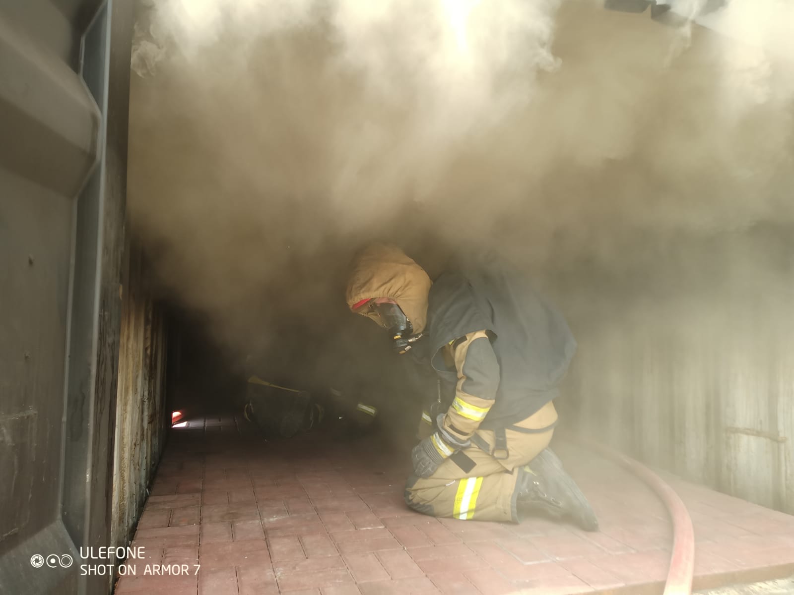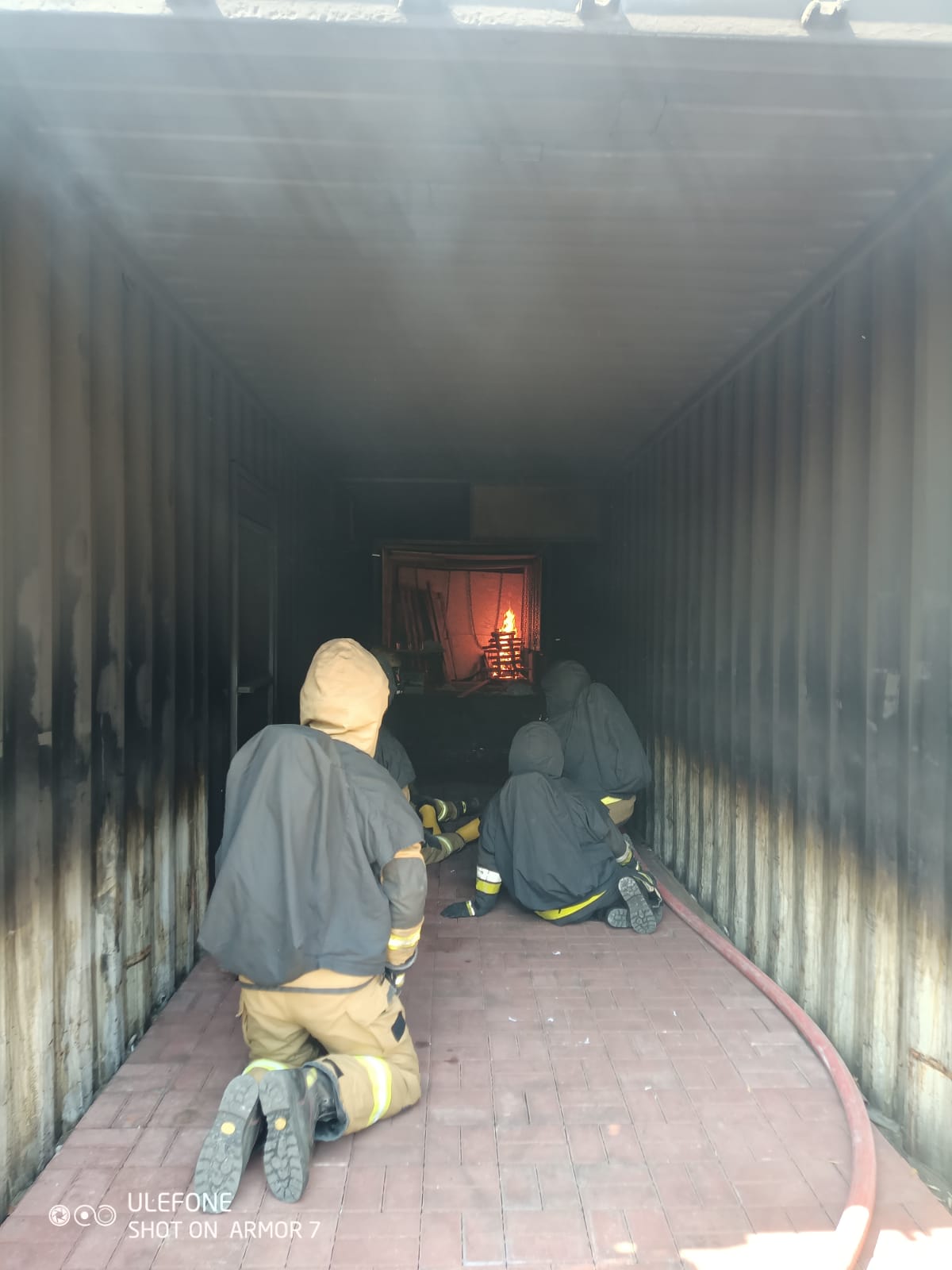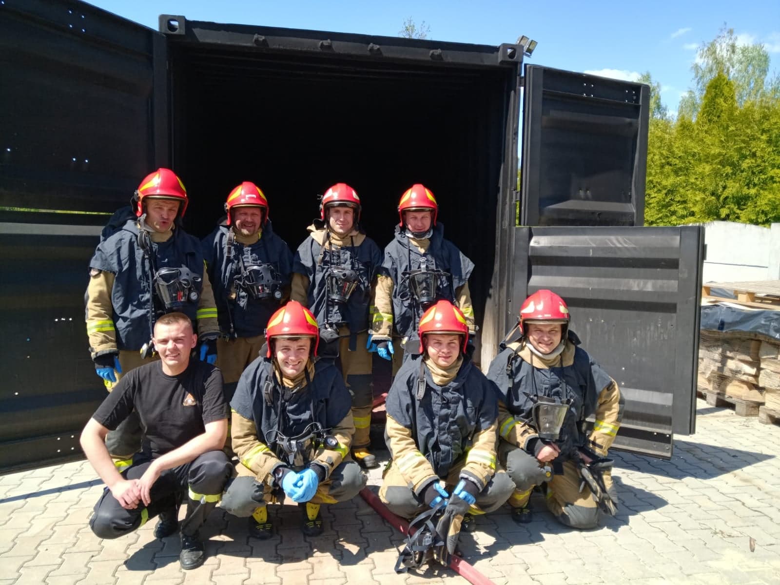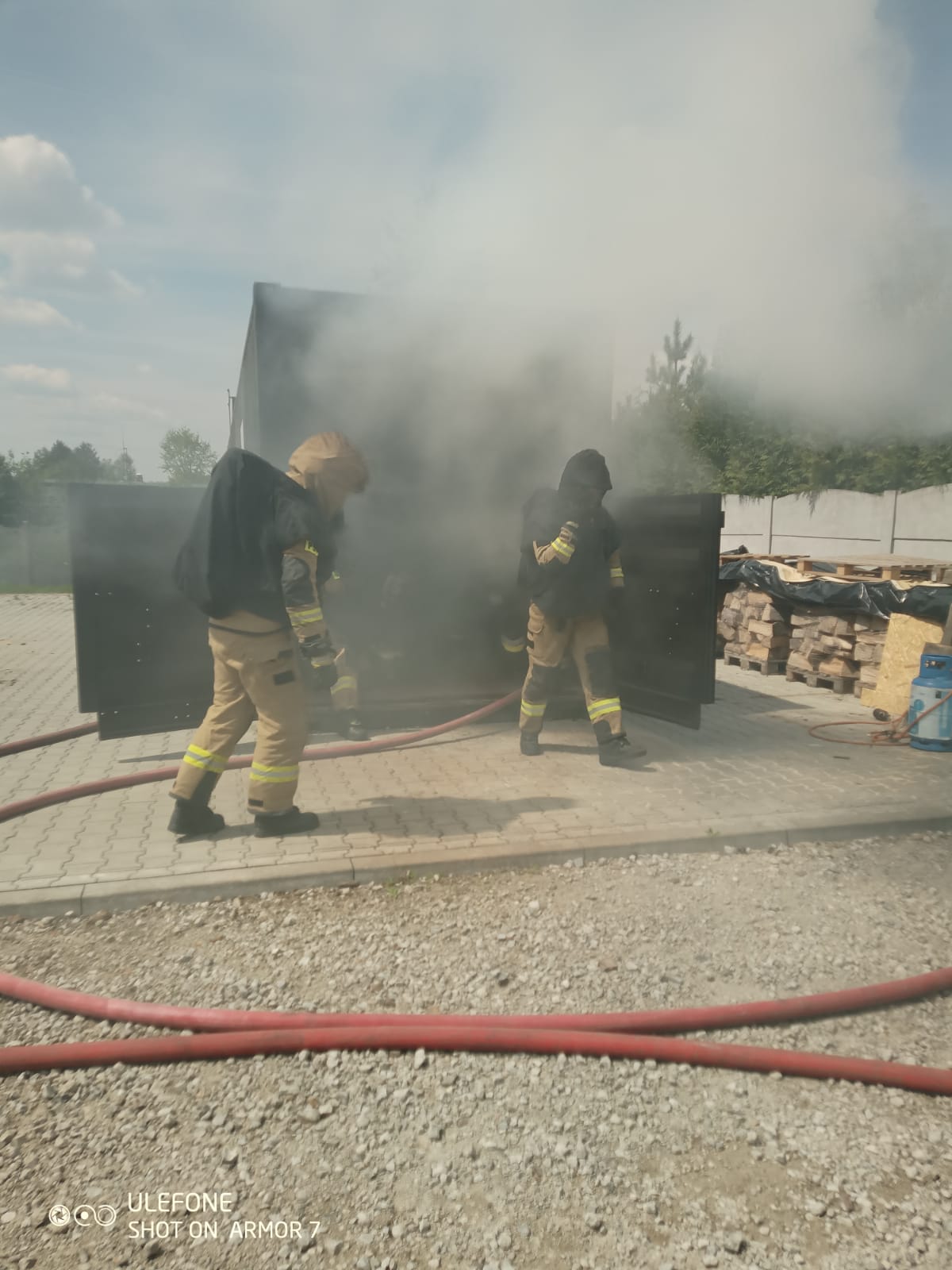 Ćwiczenia w kontenerze ogniowym z zakresu gaszenia pożarów wewnętrznych