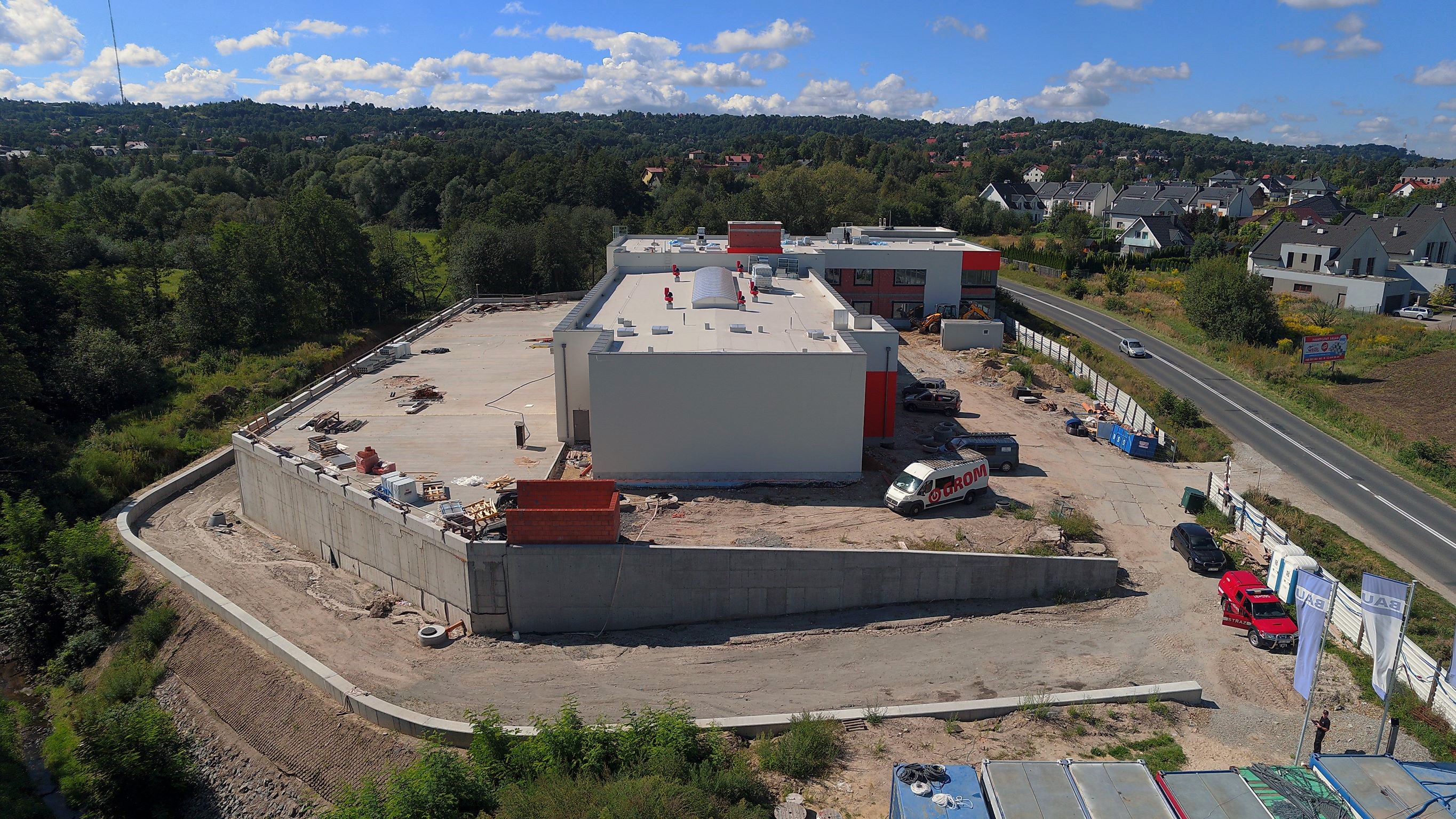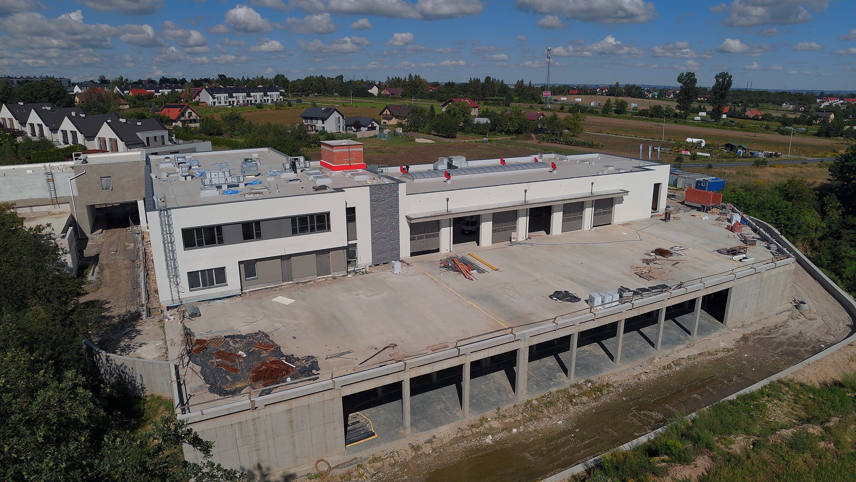 Prace na budowie przebiegają zgodnie z planem, wykonywana jest elewacja budynku, zamontowano ściankę wspinaczkową, montowane są centrale wentylacyjne, system odciągów spalin w garażu. Trwają prace przy instalacjach elektrycznych, instalacjach słaboprądowych i wentylacyjnych. Na terenie budowy, co dwa tygodnie odbywają się narady koordynacyjne, podczas których podsumowywany jest zakres zrealizowanych prac, jak również omawiane są najważniejsze kwestie dotyczące dalszej realizacji inwestycji.