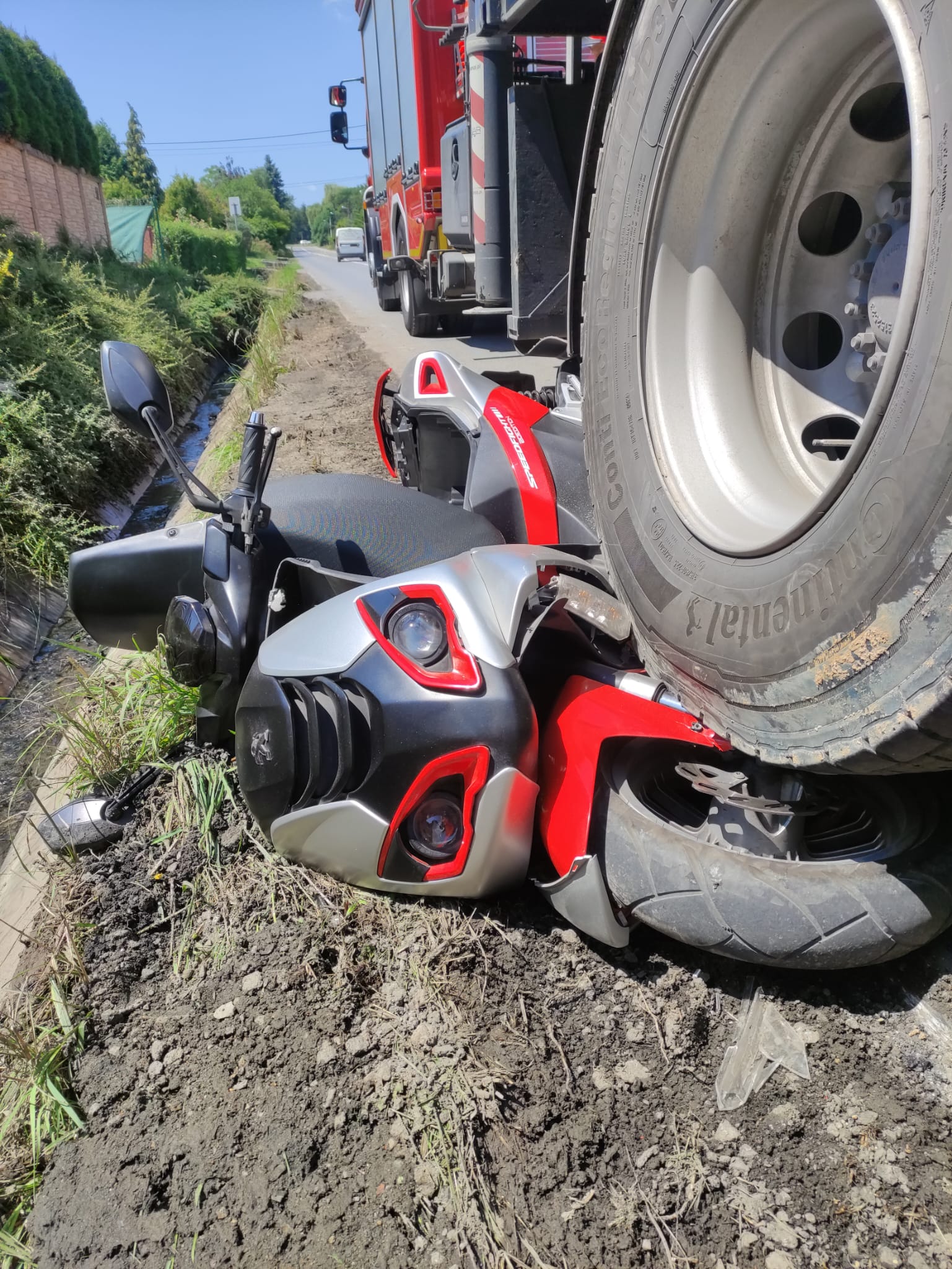 Zderzenie skutera z samochodem ciężarowym na ul. Sadowej