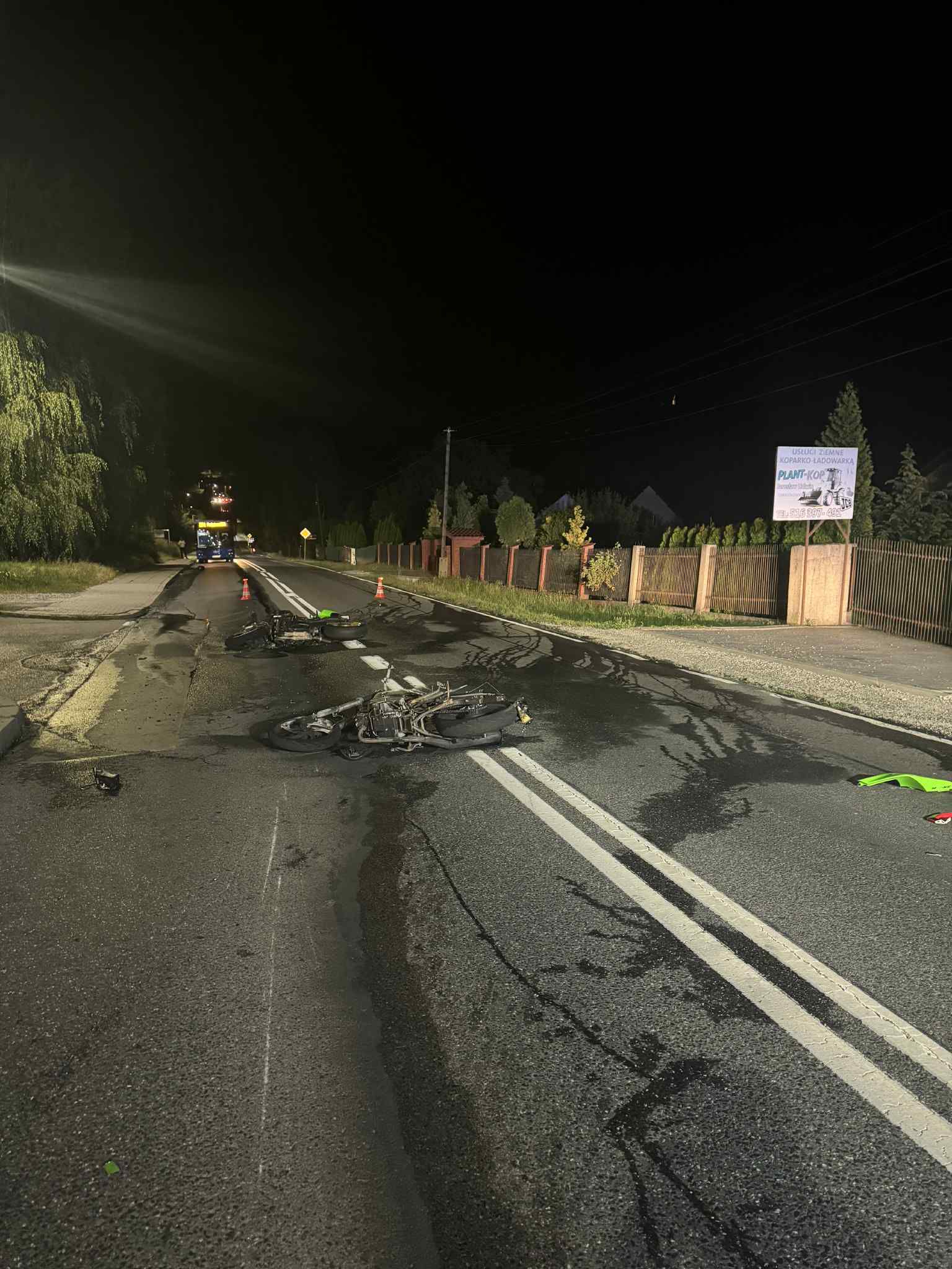 Druga interwencja miała miejsce wieczorem, na drodze wojewódzkiej nr 966 w miejscowości Tomaszkowice. O godzinie 21:35 do stanowiska kierowania wpłynęło zgłoszenie o pożarze motocykli znajdujących się na jezdni. Na miejsce skierowano dwa zastępy z JRG Wieliczka. Po dojeździe na miejsce strażacy zastali dwa płonące motocykle oraz trzy osoby poszkodowane. Podano jeden prąd w natarciu na palące się pojazdy oraz udzielono kwalifikowanej pierwszej pomocy rannym. Osoby te, z obrażeniami kończyn i poparzeniami, zostały przetransportowane do szpitala przez przybyłe na miejsce Zespoły Ratownictwa Medycznego. Na czas prowadzenia działań droga była całkowicie zablokowana. Po zakończeniu czynności prowadzonych przez Policję, miejsce zdarzenia zostało uprzątnięte, a ruch przywrócono.