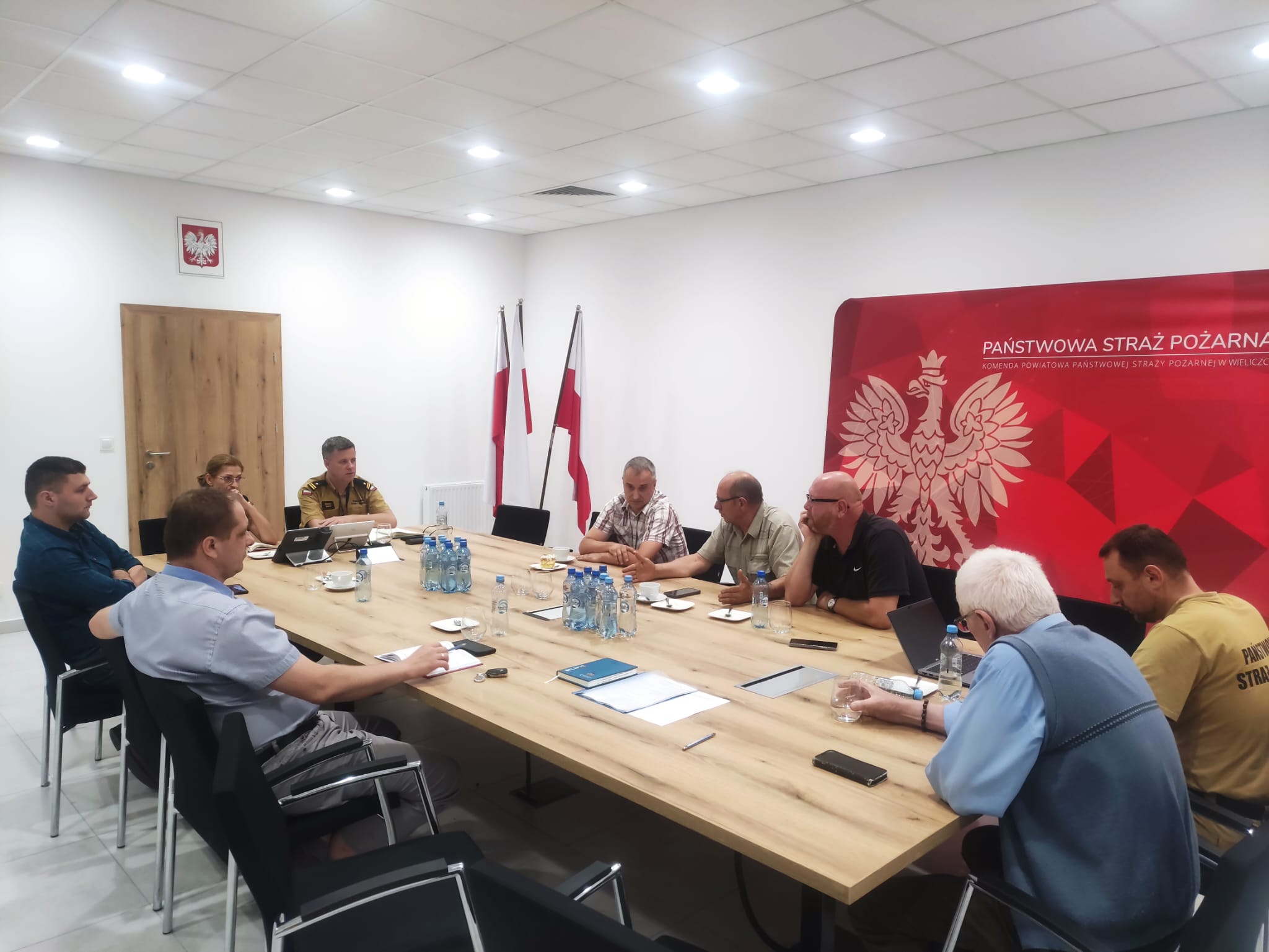 26 czerwca br., w Komendzie Powiatowej Państwowej Straży Pożarnej w Wieliczce odbyło się spotkanie robocze z Komendantami Gminnymi z terenu powiatu wielickiego. Na spotkaniu poruszono tematy z bieżącej działalności jednostek OSP w zakresie spraw operacyjnych, szkoleniowych oraz polityki informacyjnej. Omówiony został system szkolenia druhów oraz system rozdziału dotacji budżetowych na rozwój jednostek OSP. Kierownictwo Komendy zapoznało się z bieżącymi i najpilniejszymi potrzebami jednostek OSP oraz problemami z jakimi borykają się druhowie w codziennej działalności. Z ramienia Komendy Powiatowej w spotkaniu uczestniczyli: Komendant Powiatowy - mł. bryg. Robert Ulman, Z-ca Komendanta Powiatowego - mł. kpt. Danuta Pawelec, Naczelnik Wydziału ds. Operacyjno-Szkoleniowych - st. kpt. Bartosz Kłosowicz, starszy inspektor sztabowy Wydziału ds. Operacyjno-Szkoleniowych -asp. Mirosław Fiust.