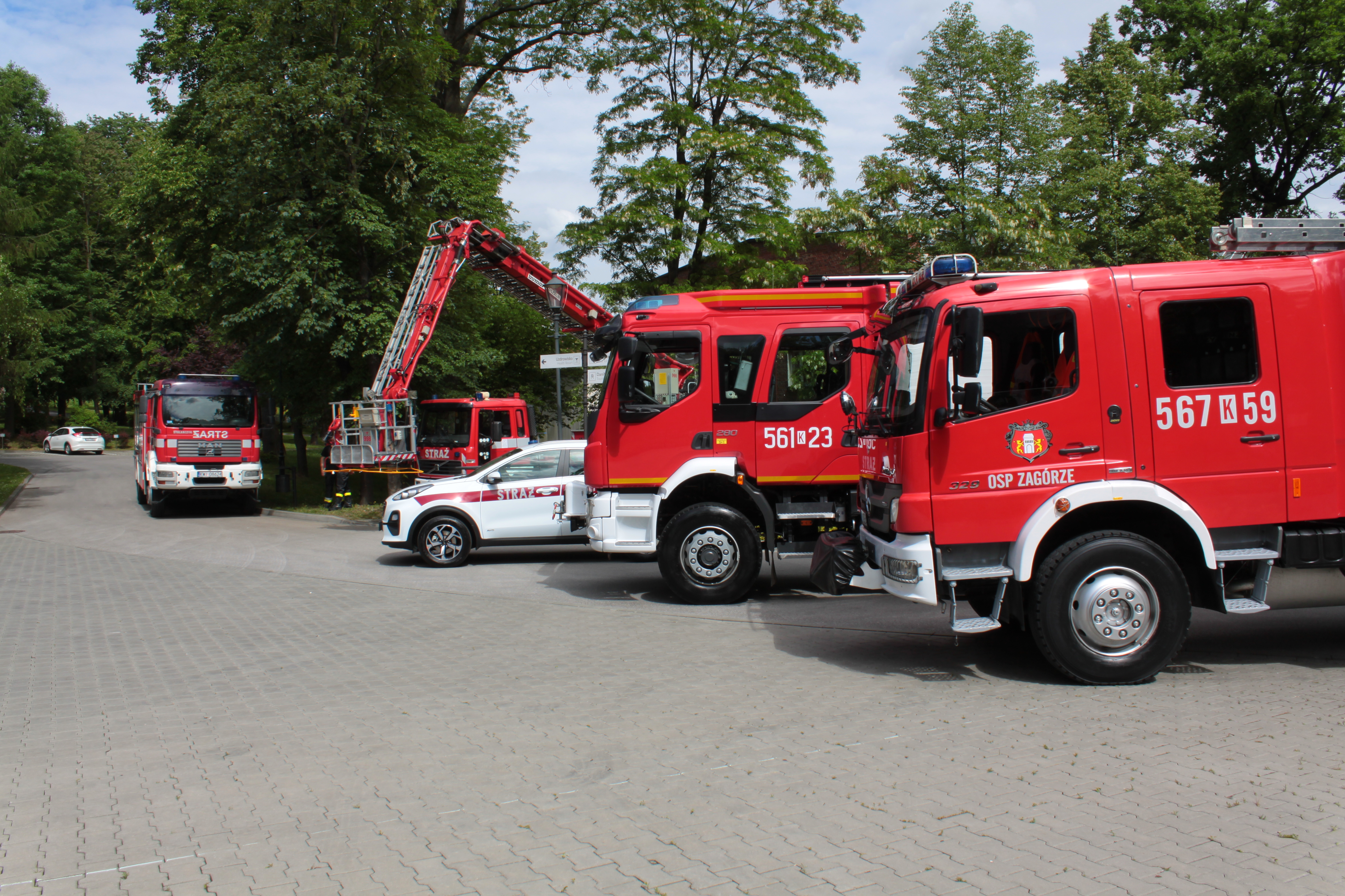 - Dla Komendy Powiatowej Państwowej Straży Pożarnej w Wieliczce średni samochód ratowniczo – gaśniczy na podwoziu VOLVO oraz samochód operacyjny Kia Sportage.