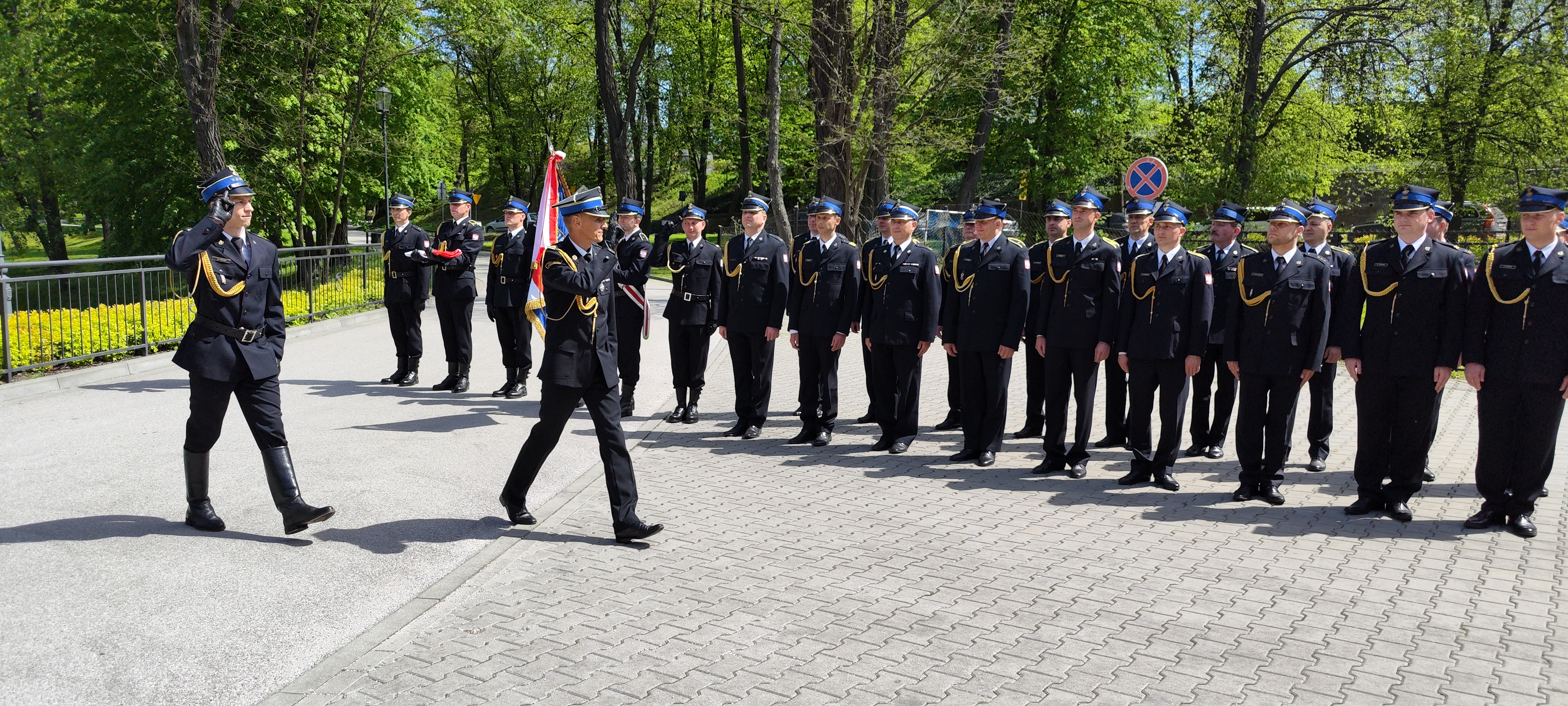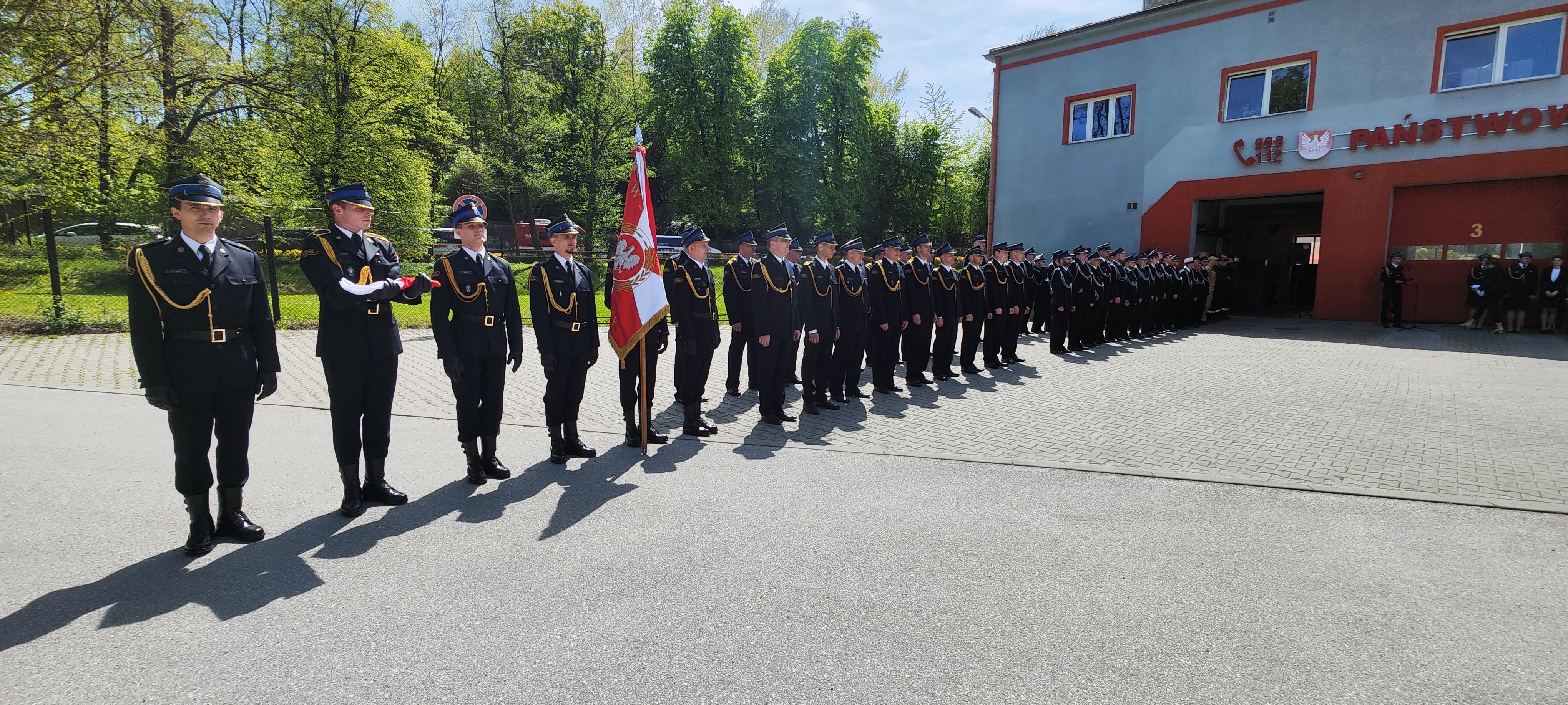 Uroczystość rozpoczęła się od złożenia meldunku Zastępcy Małopolskiego Komendanta Wojewódzkiego Państwowej Straży Pożarnej bryg. Przemysławowi Przęczkowi przez dowódcę uroczystości st. kpt. Damiana Chmurę. Po dokonaniu przeglądu pododdziałów, w czasie podnoszenia flagi państwowej na maszt odegrany został hymn państwowy.