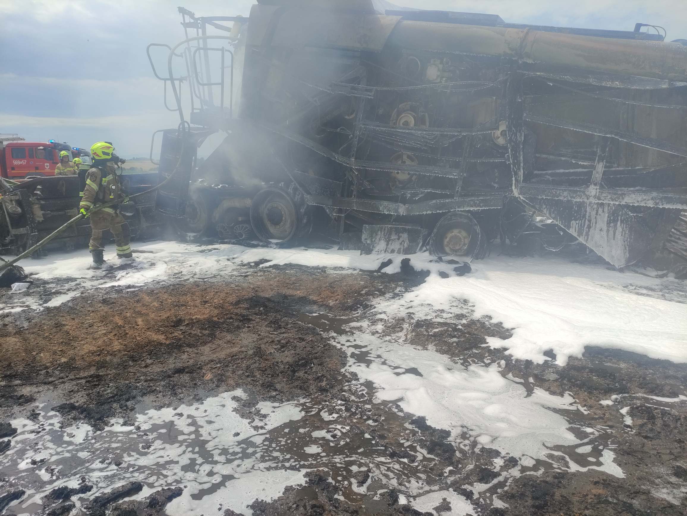Po przybyciu na miejsce zdarzenia pierwszych podmiotów ratowniczych, strażacy zastali pożar w pełni rozwinięty. Działania polegały na podaniu dwóch prądów gaśniczych w natarciu na palący się kombajn oraz jeden prąd w obronie w celu zapobiegnięcia rozprzestrzeniania się ognia po ściernisku.