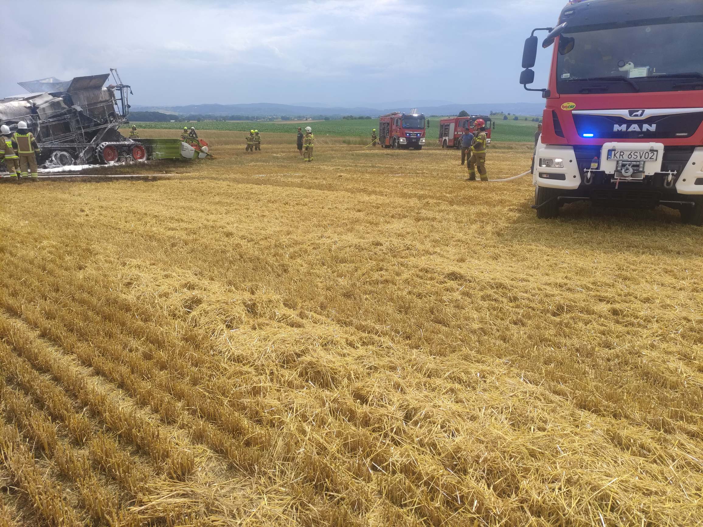 W dniu 12.07.2023 r. do Stanowiska Kierowania Komendanta Powiatowego Państwowej Straży Pożarnej w Wieliczce wpłynęło zgłoszenie z informacją o pożarze kombajnu w miejscowości Szczytniki. Dyżurny Operacyjny niezwłocznie zadysponował jeden zastęp z Jednostki Ratowniczo – Gaśniczej PSP w Wieliczce, Grupę Operacyjną Komendanta Powiatowego PSP w Wieliczce, a także siły i środki jednostek Ochotniczych Straży Pożarnych z terenu gminy Gdów: OSP Cichawa, OSP Szczytniki, OSP Pierzchów oraz OSP Gdów.