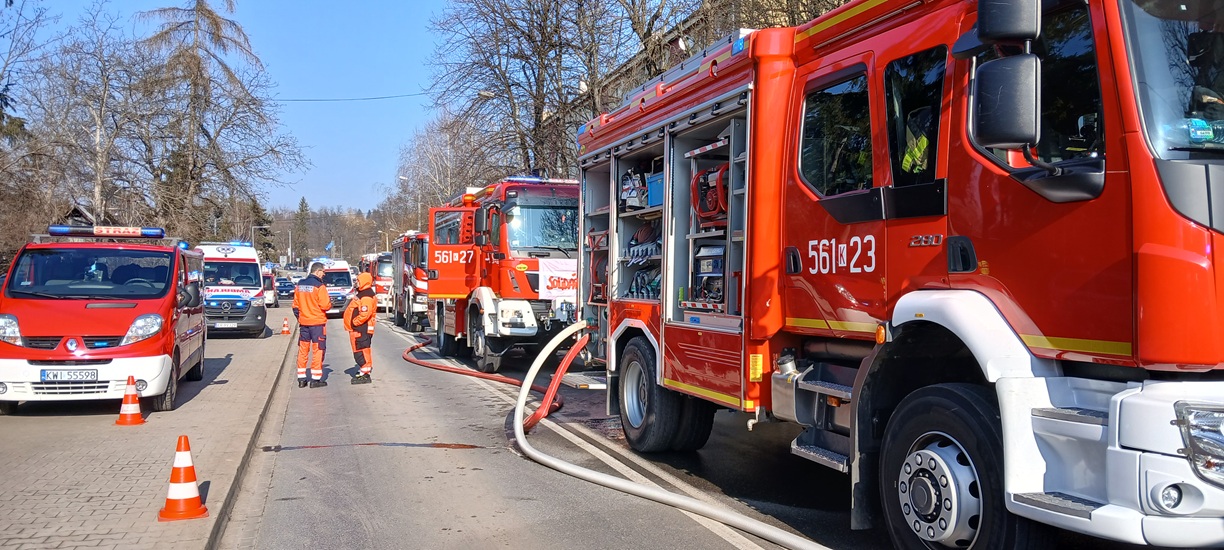 10 lutego br. o godzinie 10:05 wpłynęło zgłoszenie do Stanowiska Kierowania Komendanta Powiatowego PSP w Wieliczce o pożarze jednego z mieszkań na parterze w budynku wielorodzinnym. Zdarzenie miało miejsce w Wieliczce na osiedlu Tadeusza Kościuszki. Po przybyciu na miejsce, strażacy zastali pożar w pełni rozwinięty gdzie płomienie wychodziły na zewnątrz przez otwór okienny. Strażacy niezwłocznie przystąpili do działań mających na celu zlokalizowanie źródła pożaru i jego ugaszenie. Równo z działaniami gaśniczymi prowadzona była ewakuacja mieszkańców znajdujących się w budynku. Łącznie zostało ewakuowanych 9 osób w tym 5 osób przez strażaków. Osoby ewakuowano przy pomocy drabiny mechanicznej oraz klatką schodową. W wyniku tego zdarzenia zostało poszkodowanych 5 osób, które zostały zabrane do szpitalnych oddziałów ratunków przez zespoły ratownictwa medycznego będące na miejscu. Na czas prowadzonych działań ruch na drodze był całkowicie zamknięty. Łącznie w działaniach ratowniczo-gaśniczych brało udział 10 pojazdów pożarniczych oraz 50 strażaków. Działania prowadzone wspólnie z Policją, Pogotowiem Ratunkowym, Pogotowiem Energetycznym oraz Pogotowiem Gazowym trwały blisko 6 godzin.
