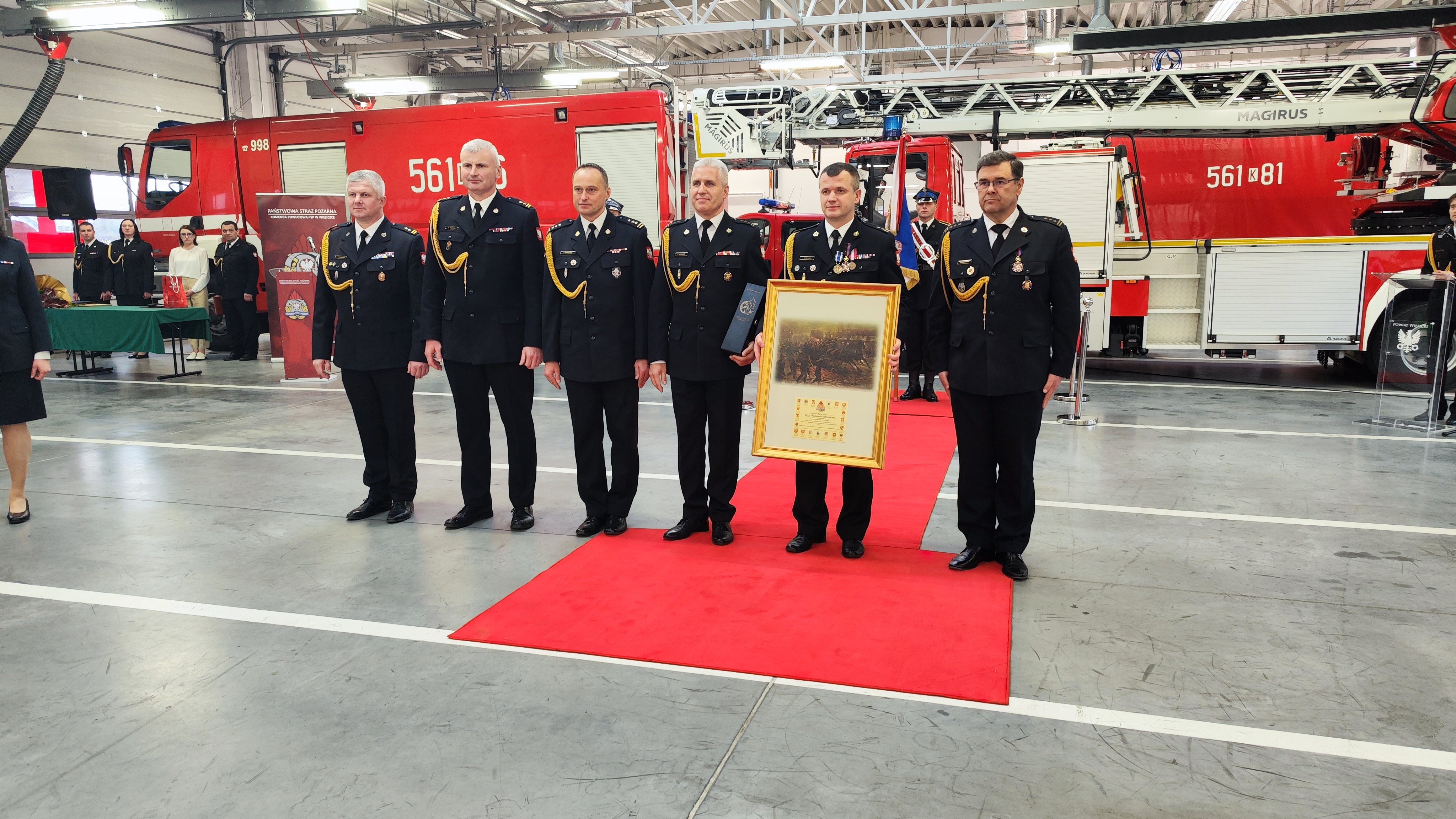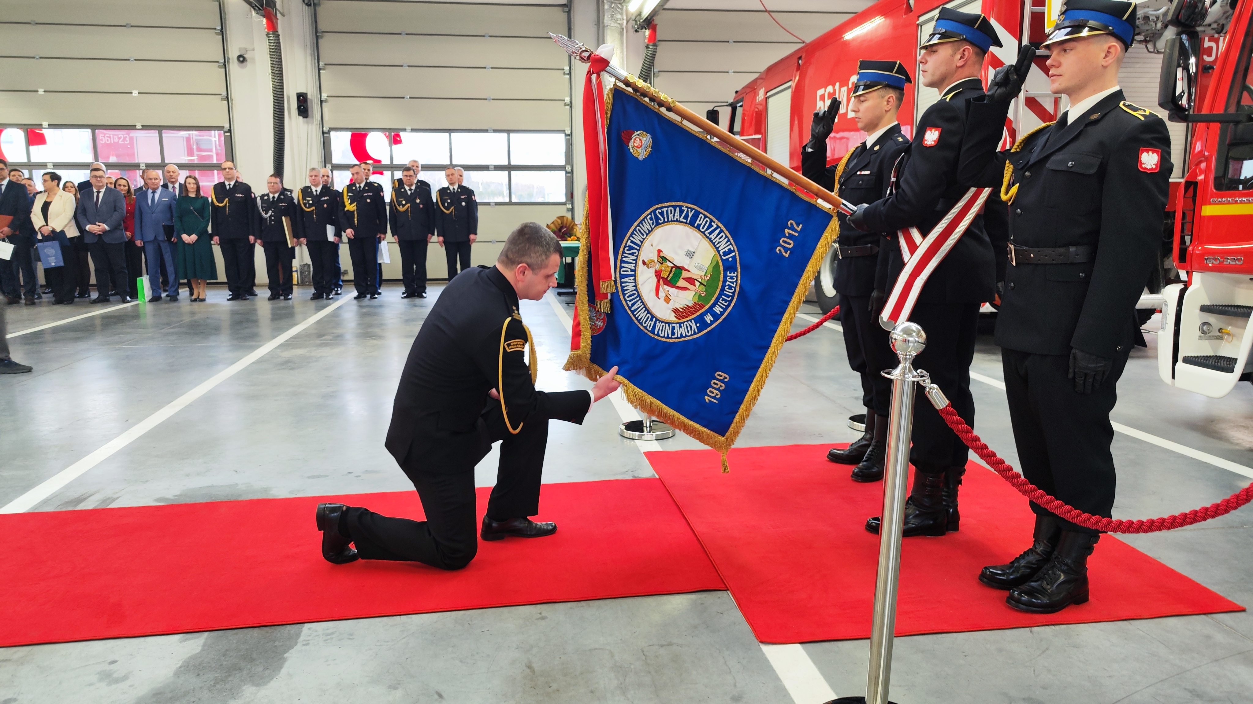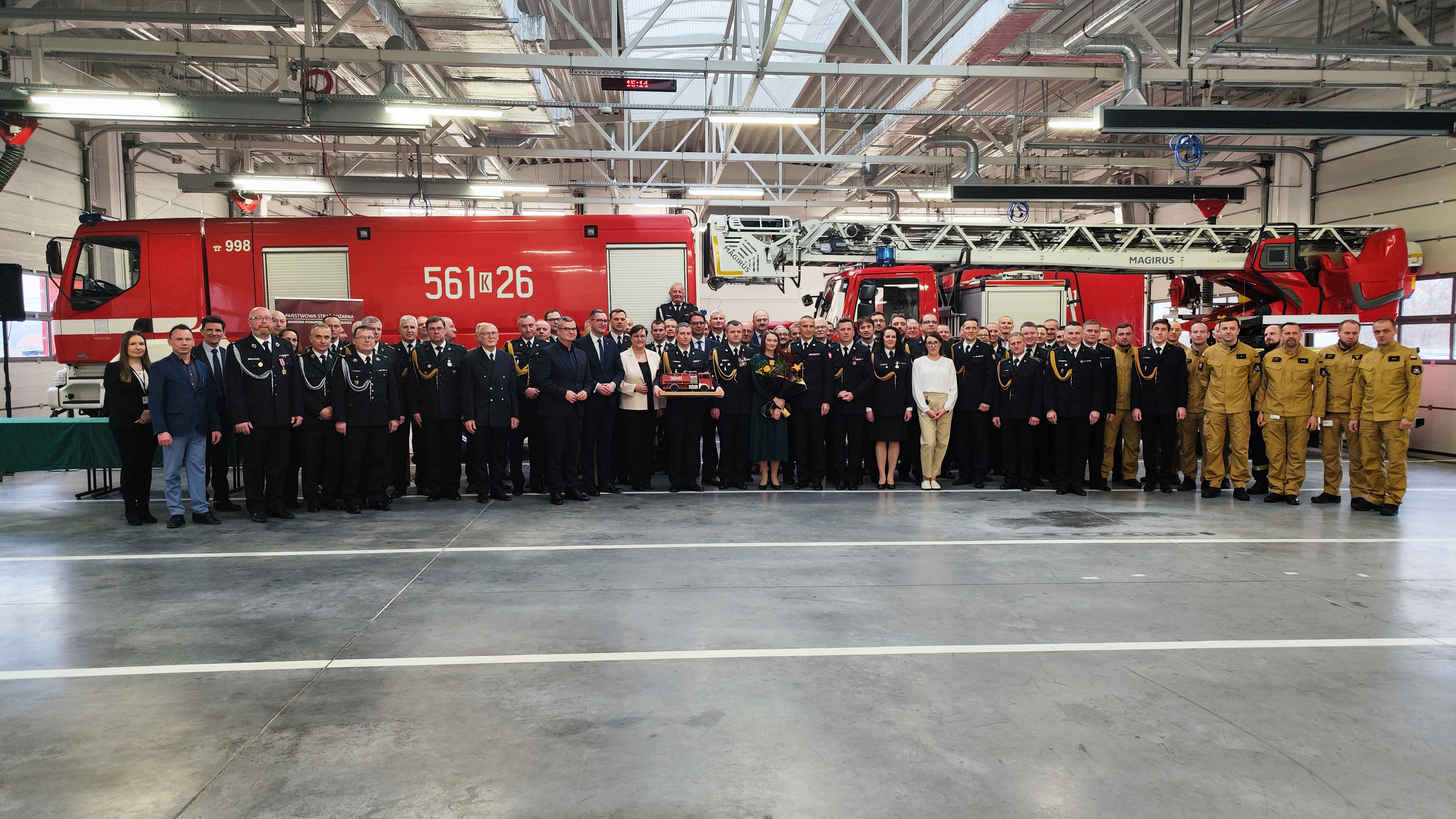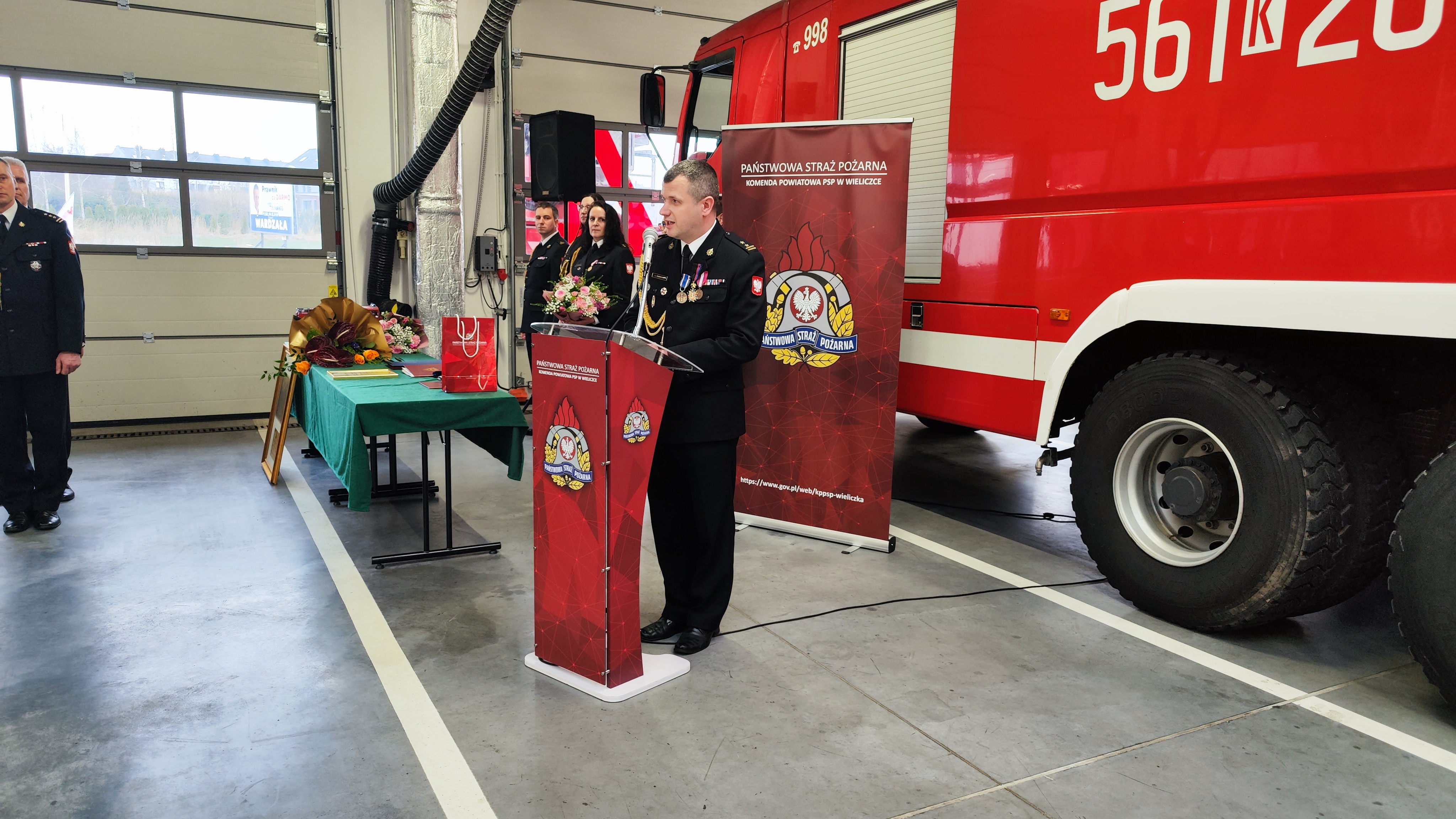 W uroczystości udział wzięli: małopolski komendant wojewódzki Państwowej Straży Pożarnej bryg. Przemysław Przęczek, funkcjonariusze i pracownicy cywilni Komendy Powiatowej PSP w Wielicze oraz wielu znamienitych gości, w tym m.in.: starosta wielicki Pan Roman Ptak wraz z wicestarostą Panią Ewą Ptasznik, kapelan wielickich strażaków ks. dr Wojciech Olszowski, samorządowcy powiatu wielickiego, przedstawiciele służb i inspekcji z terenu powiatu wielickiego, prezes Zarządu Oddziału Powiatowego ZOSP RP w Wieliczce dh Władysław Kucharski, komendanci gminni OSP, prezesi oraz naczelnicy jednostek OSP z terenu powiatu wielickiego oraz prezes Zarządu Kopalni Soli Wieliczka S.A. Pan Marian Leśny.