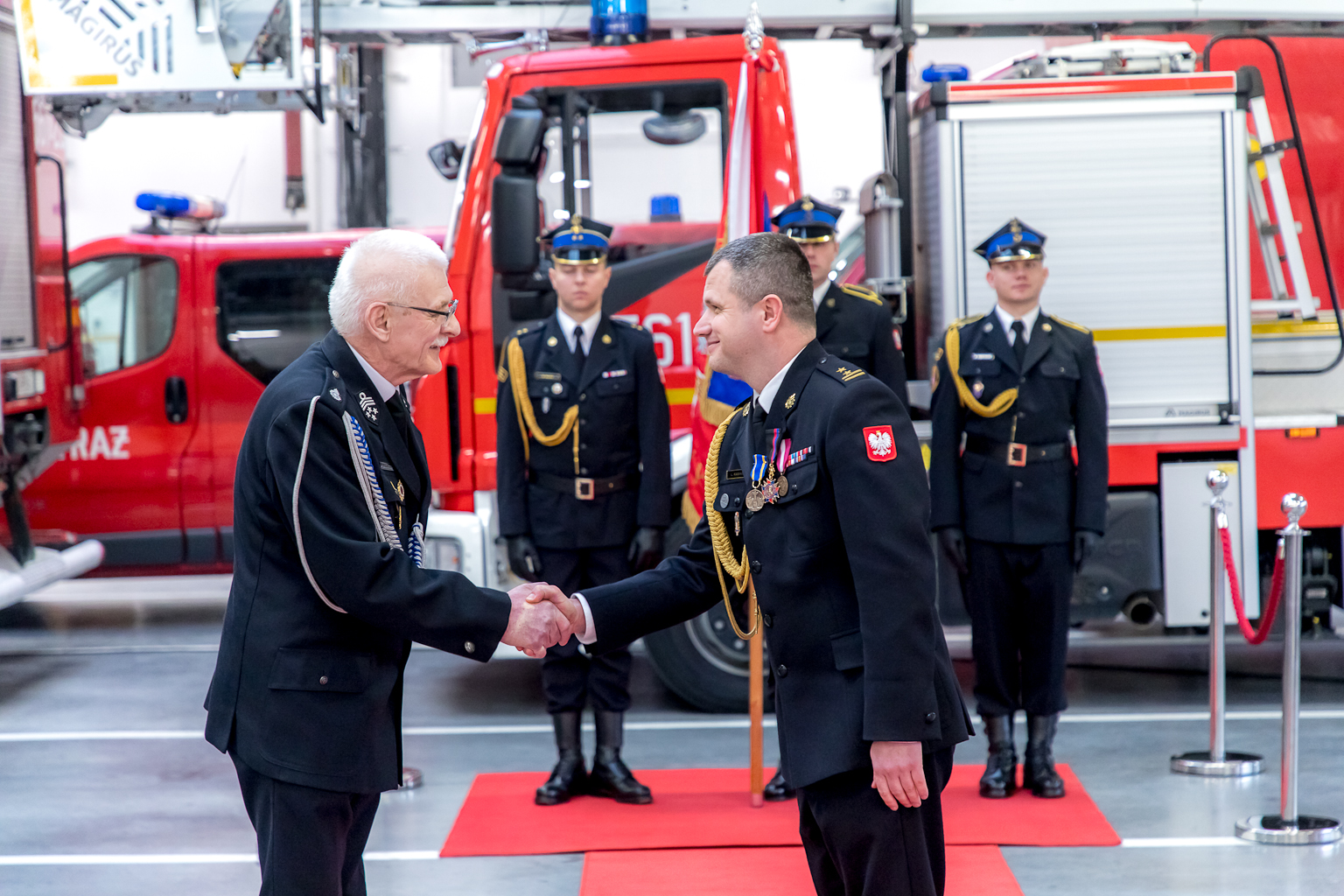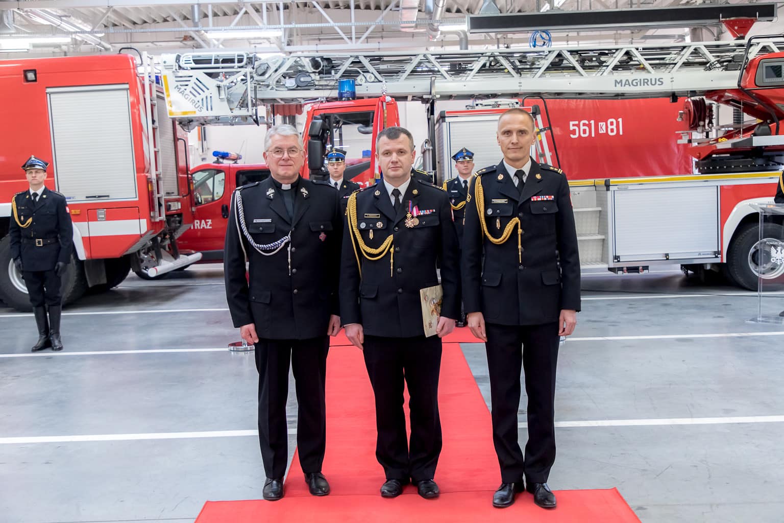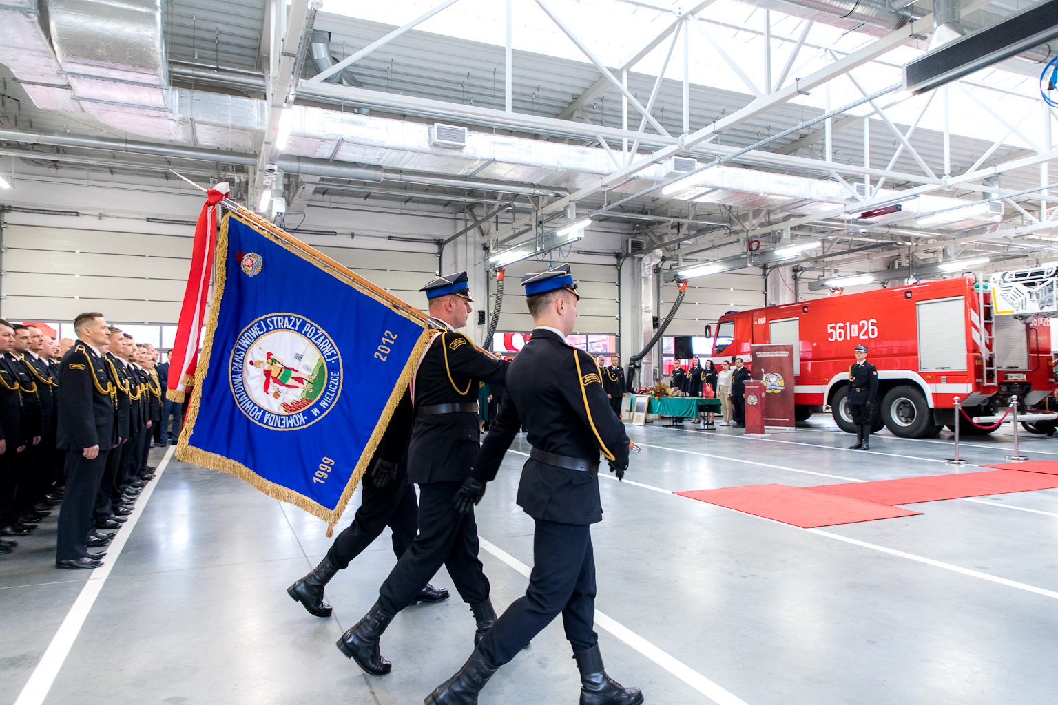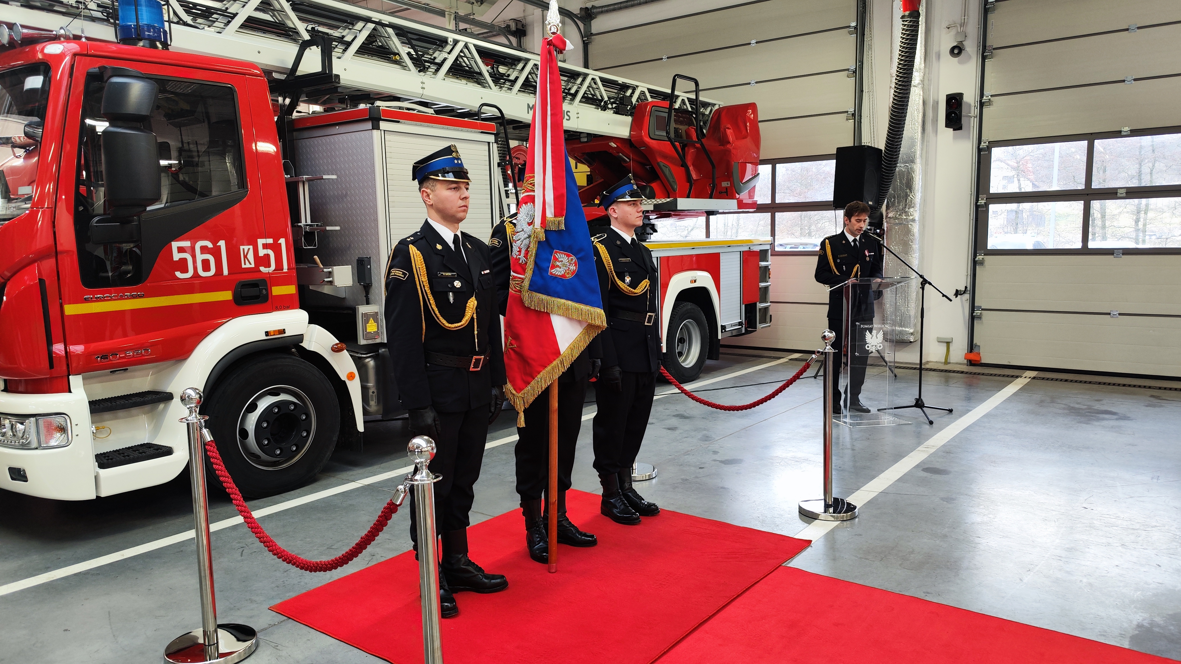 W uroczystości udział wzięli: małopolski komendant wojewódzki Państwowej Straży Pożarnej bryg. Przemysław Przęczek, funkcjonariusze i pracownicy cywilni Komendy Powiatowej PSP w Wielicze oraz wielu znamienitych gości, w tym m.in.: starosta wielicki Pan Roman Ptak wraz z wicestarostą Panią Ewą Ptasznik, kapelan wielickich strażaków ks. dr Wojciech Olszowski, samorządowcy powiatu wielickiego, przedstawiciele służb i inspekcji z terenu powiatu wielickiego, prezes Zarządu Oddziału Powiatowego ZOSP RP w Wieliczce dh Władysław Kucharski, komendanci gminni OSP, prezesi oraz naczelnicy jednostek OSP z terenu powiatu wielickiego oraz prezes Zarządu Kopalni Soli Wieliczka S.A. Pan Marian Leśny.
