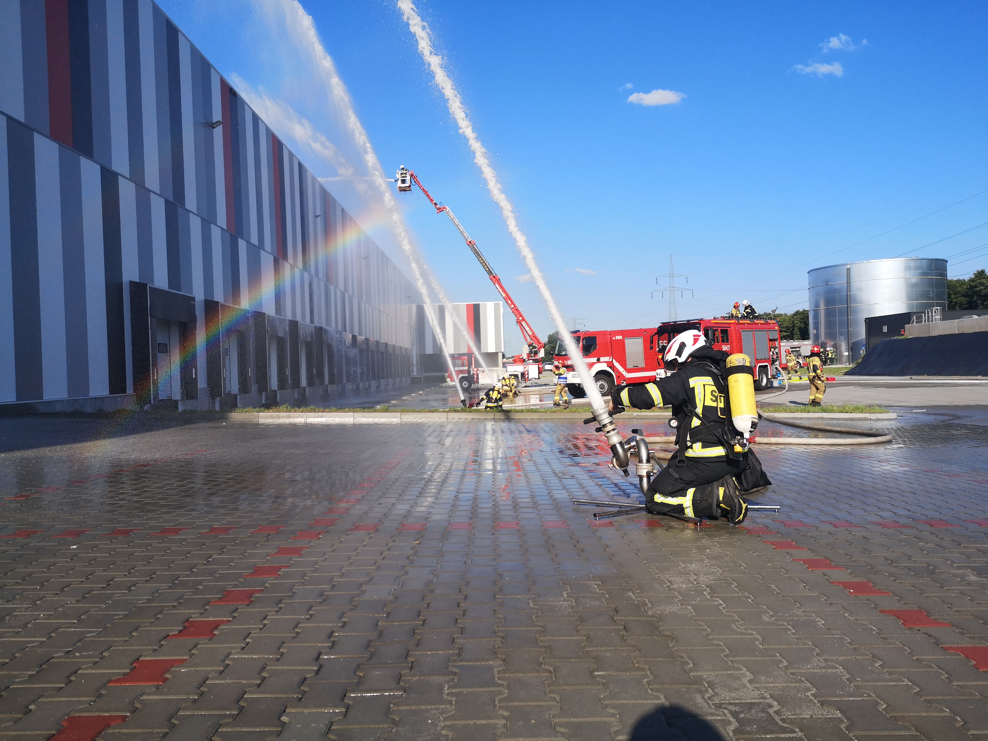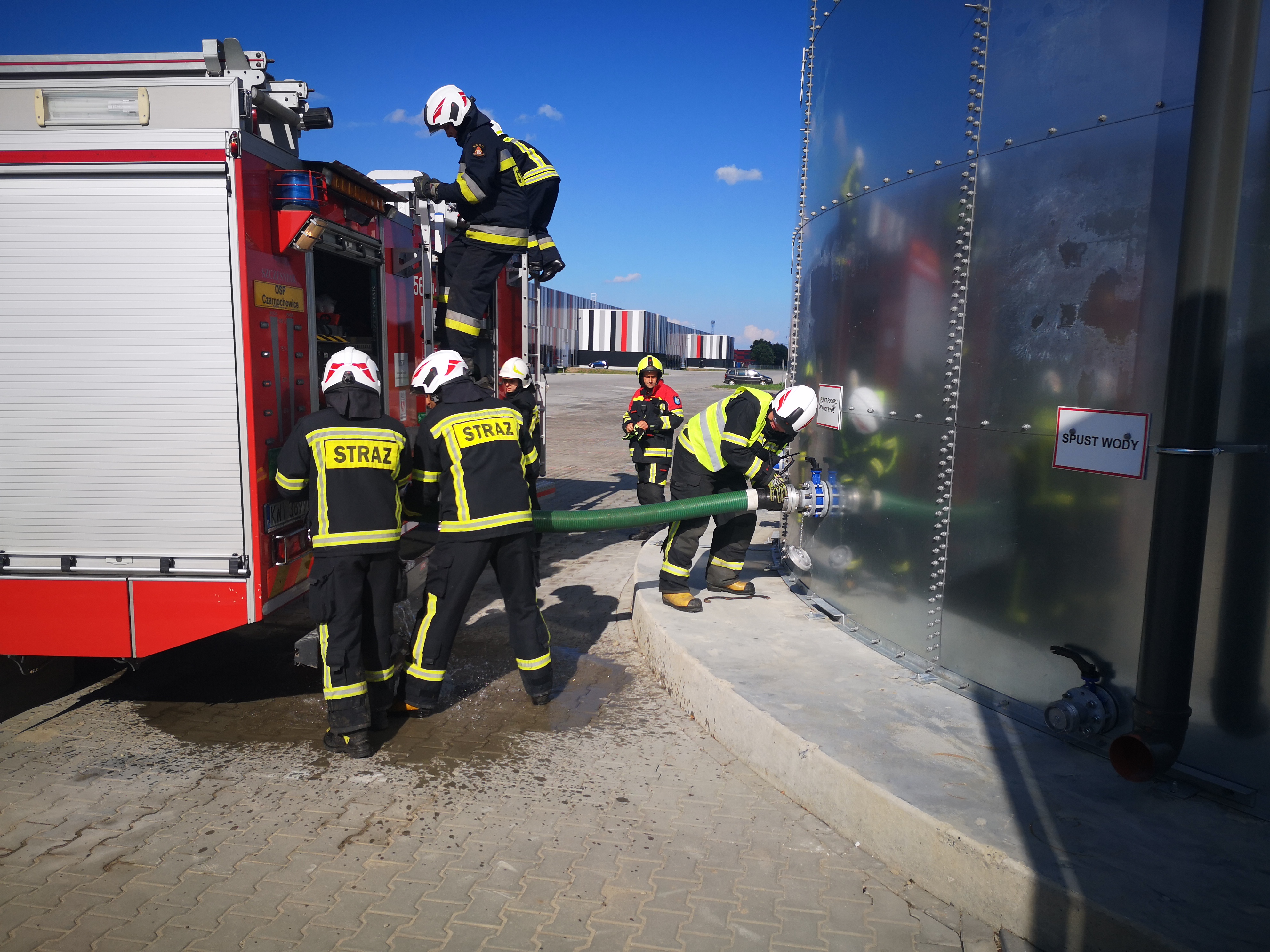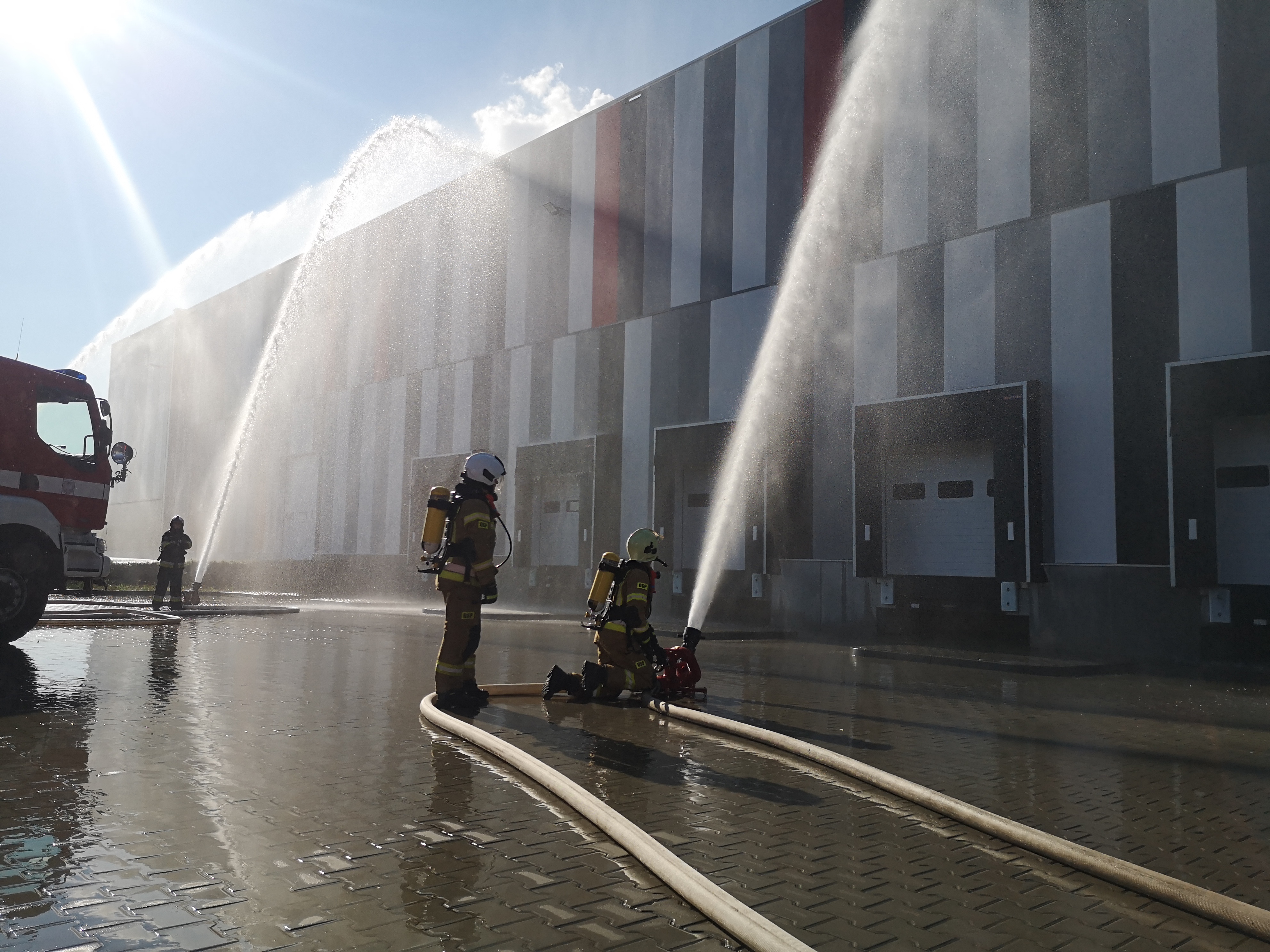W dniach 27,28,29 lipca 2021 r. strażacy z Jednostki Ratowniczo - Gaśniczej w Wieliczce oraz jednostek OSP przeprowadzili wspólne ćwiczenia na terenie wielickiej strefy aktywności gospodarczej. Obiektem przeznaczonym do przeprowadzenia warsztatów była jedna z hal magazynowych zlokalizowana w miejscowości Kokotów. W pierwszej części zapoznano się ze zpecyfiką budynku pod kątem możliwości prowadzenia działań ratowniczo - gaśniczych. Następnie w cześci praktycznej zrealizowano założenie taktyczne polegające na zbudowaniu zaopatrzenia wodnego w opraciu o przeciwpożarowy zbiornik wodny oraz podaniu 4 prądów gaśniczych wody.