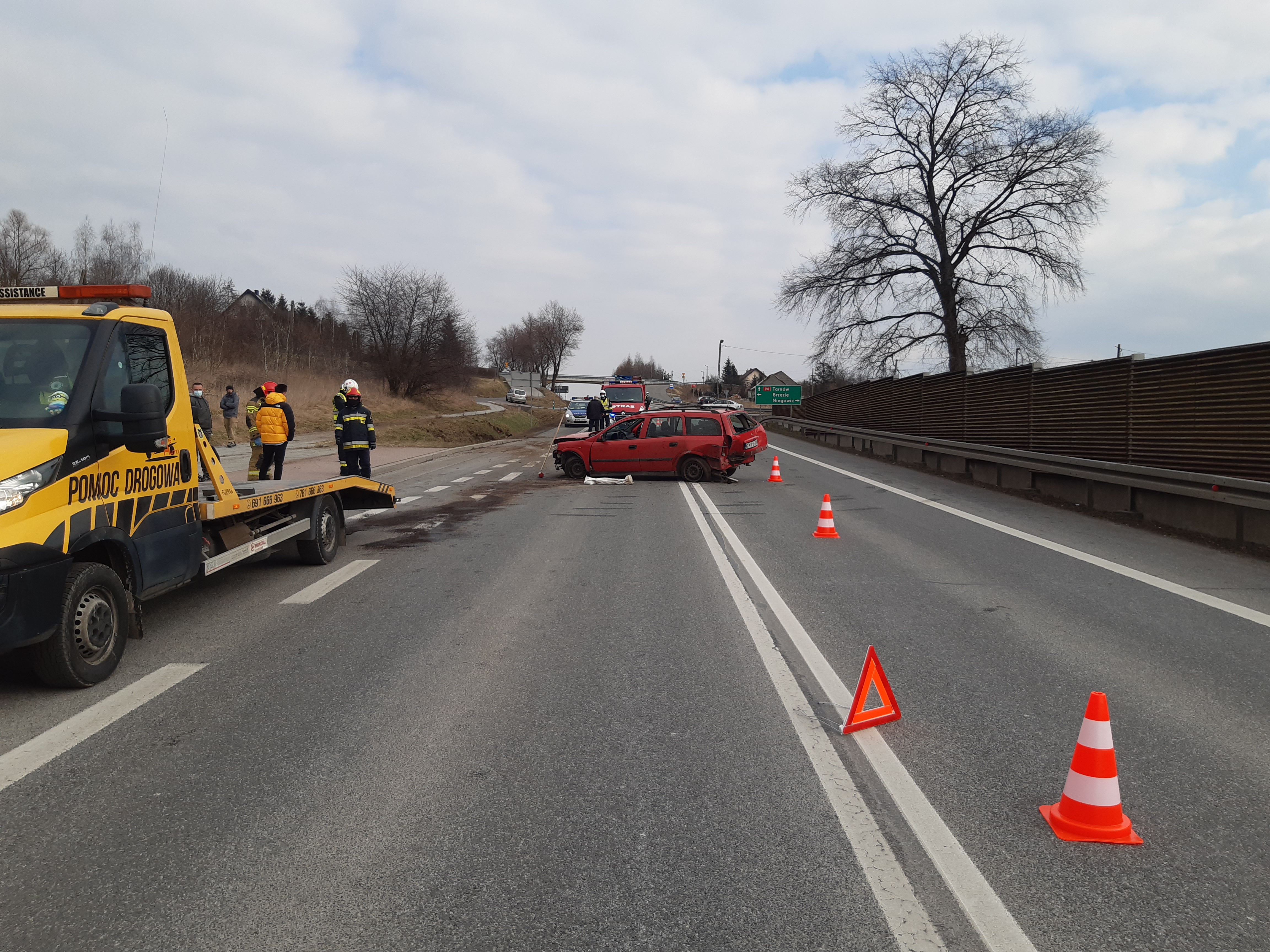 Przybyłe na miejsce jako pierwsze jednostki OSP, udzieliły kwalifikowanej pierwszej pomocy osobie poszkodwanej a następne przekazały ją zespołowi ratownictwa medycznego. Samochód osobowy znajdował się na środku DK94 blokując całkowie ruch. Dzięki sprawnej wpółpracy służb (Straży Pożarnej, Policji, Pogotowia Ratunkowego) osoba poszkodowana szybko trafiła do szpitala, a na DK94 przywrócono ruch drogowy .