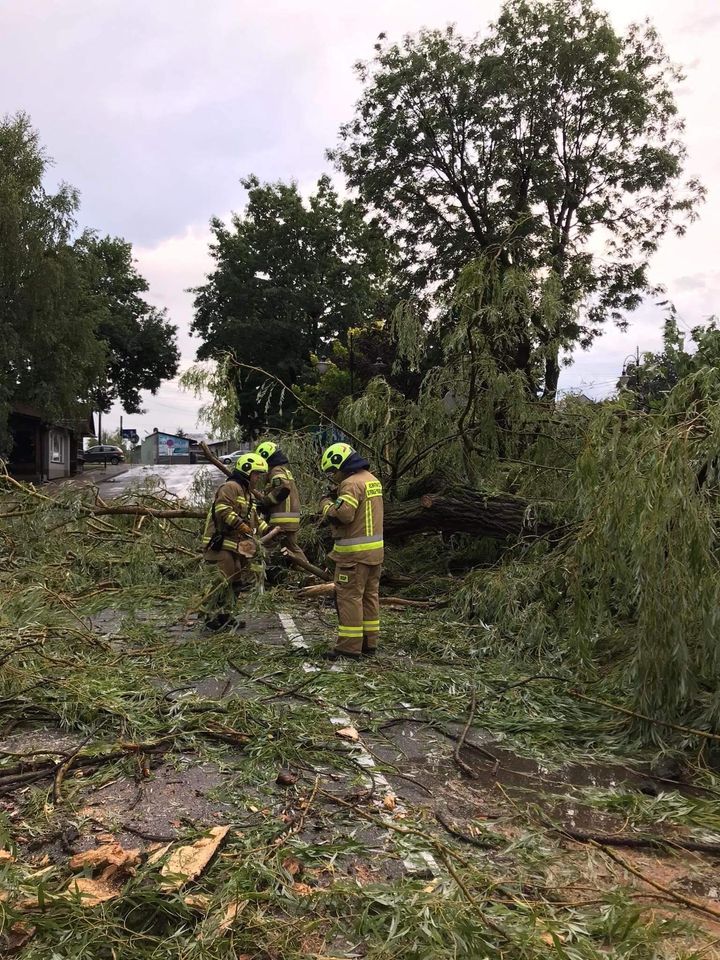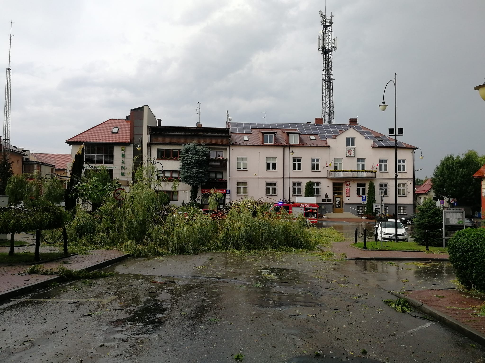 Zerwane i uszkodzone dachy, powalone drzewa, uszkodzone elementy infrastruktury energetycznej oraz telekomunikacyjnej. To efekt burzy z silnym wiatrem, która przeszła nad powiatem wielickim w sobotę 23 lipca br. Pierwsze zgłoszenie do Stanowiska Kierowania Komendanta Powiatowego Państwowej Straży Pożarnej w Wieliczce wpłynęło o godz. 17:30 - dotyczyło powalonego drzewa w miejscowości Gdów przy budynku urzędu gminy. Powalone drzewo uszkodziło linię energetyczną w wyniku czego doszło do przerw w dostawie prądu. Od tego momentu zgłoszenia wpływały lawinowo. W sumie jednostki ochrony przeciwpożarowej z terenu powiatu wielickiego wyjeżdżały 82 razy do zdarzeń, w tym 13 interwencji dotyczyło uszkodzonych dachów na budynkach mieszkalnych i 69 interwencji dotyczących wiatrołomów. W działaniach brały udział zastępy JRG Wieliczka oraz jednostki OSP z terenu gmin: Wieliczka, Niepołomice, Gdów, Biskupice, Kłaj. Najwięcej interwencji odnotowano w gminie Niepołomice oraz w gminie Gdów. W Zabierzowie Bocheńskim zerwany został dach z budynku wielorodzinnego, którego konstrukcja oparła się o elewację budynku. Strażacy zabezpieczyli ją przed dalszym osunięciem, a w dniu następnym usunęli tak by nie stwarzała zagrożenia.