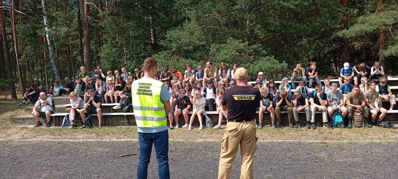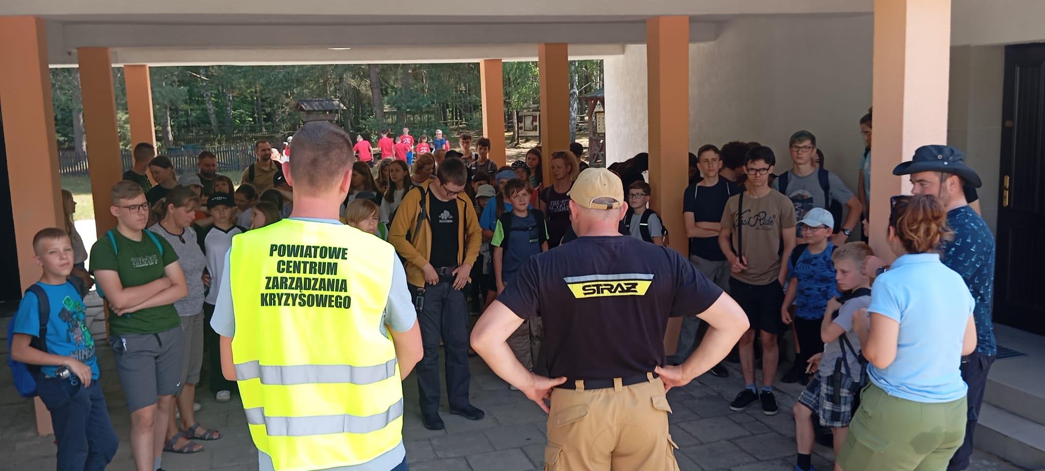 Wakacje już w pełni więc harcerze z całej Polski zjeżdzają się na wypoczynek do Nadwarciańskiego Grodu w Załęczu Wielkim. Każdy nowy obóz przechodzi szkolenie i próbną ewakuację pod czujnym okiem funkcjonariuszy z wydziału operacyjno - kontrolno rozpoznawczego naszej komendy. Młodzi uczestnicy obozów są informowani o potencjalnych zagrożeniach jak również przygotowywani do tego jak ich uniknąć.