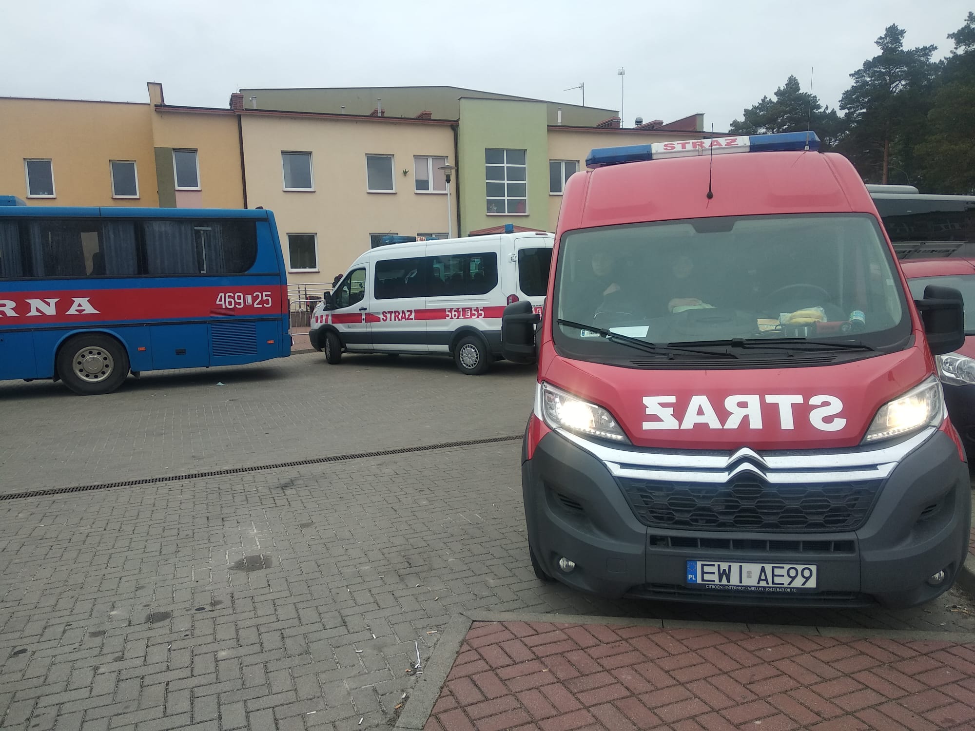 Strażacy z Komendy Powiatowej Państwowej Straży Pożarnej w Wieluniu czynnie uczestniczą we wspomaganiu ograniczania kryzysu migracyjnego w związku z sytuacją na Ukrainie. Brali udział w rozwożeniu uchodźców do punktów przygranicznych z przejścia granicznego w Hrebennym. Poza tym Jednostka Ratowniczo - Gaśnicza w Wieluniu jest w stałej gotowości do pomocy strukturom zarządzania kryzysowego w lokacji uchodźców. Ponadto w strażnicach OSP w Masłowicach i Skomlinie znajdują się miejsca gotowe przyjąć uchodźców.