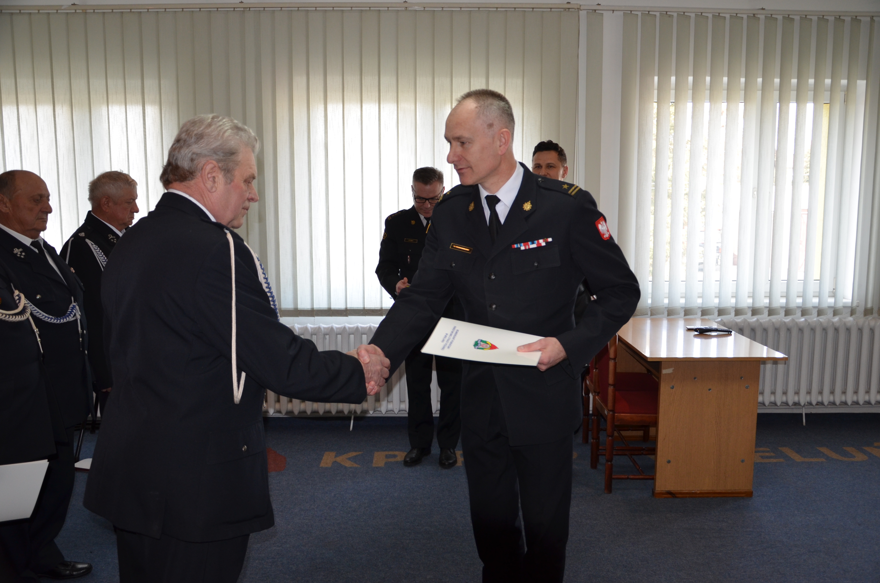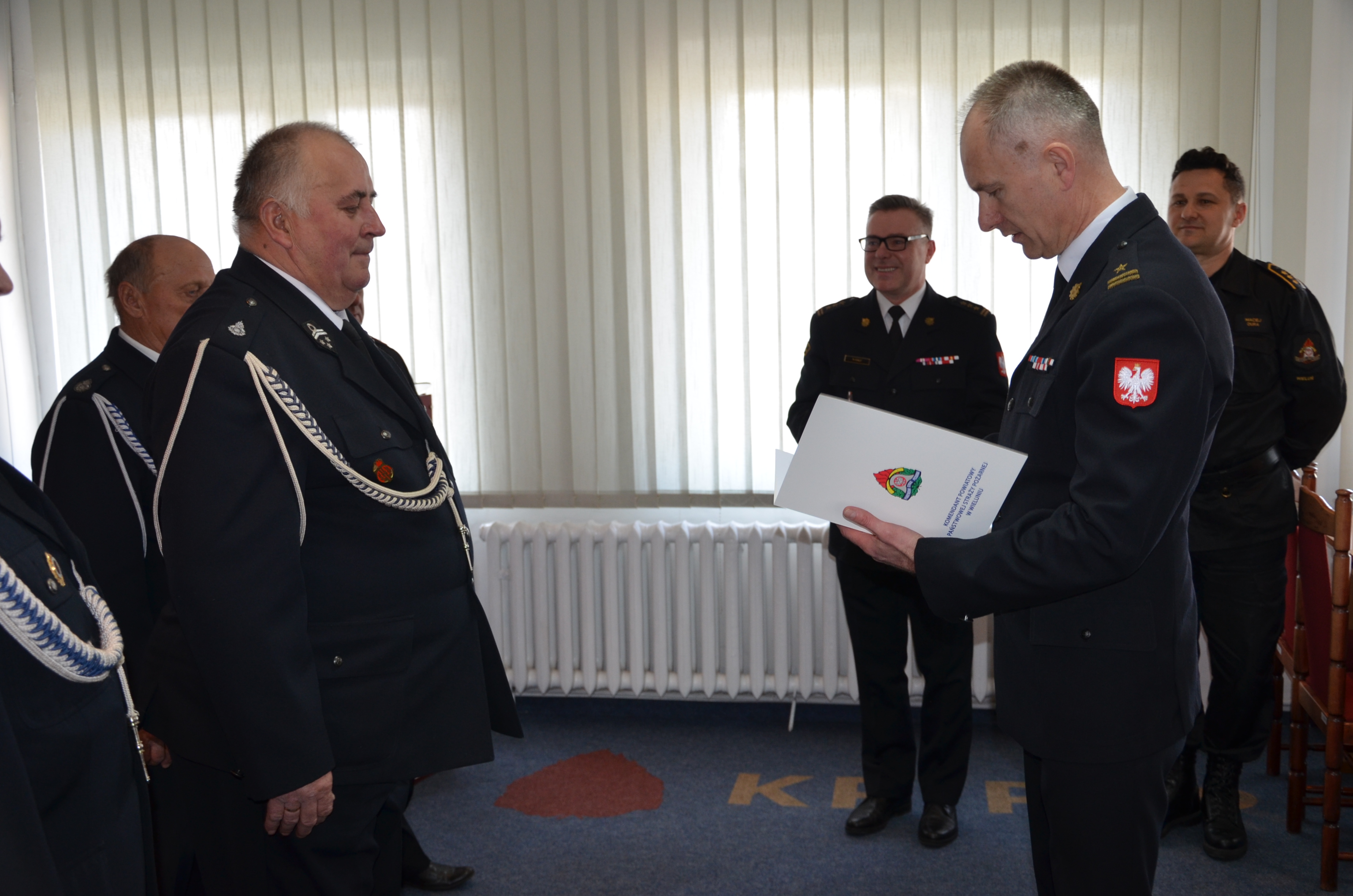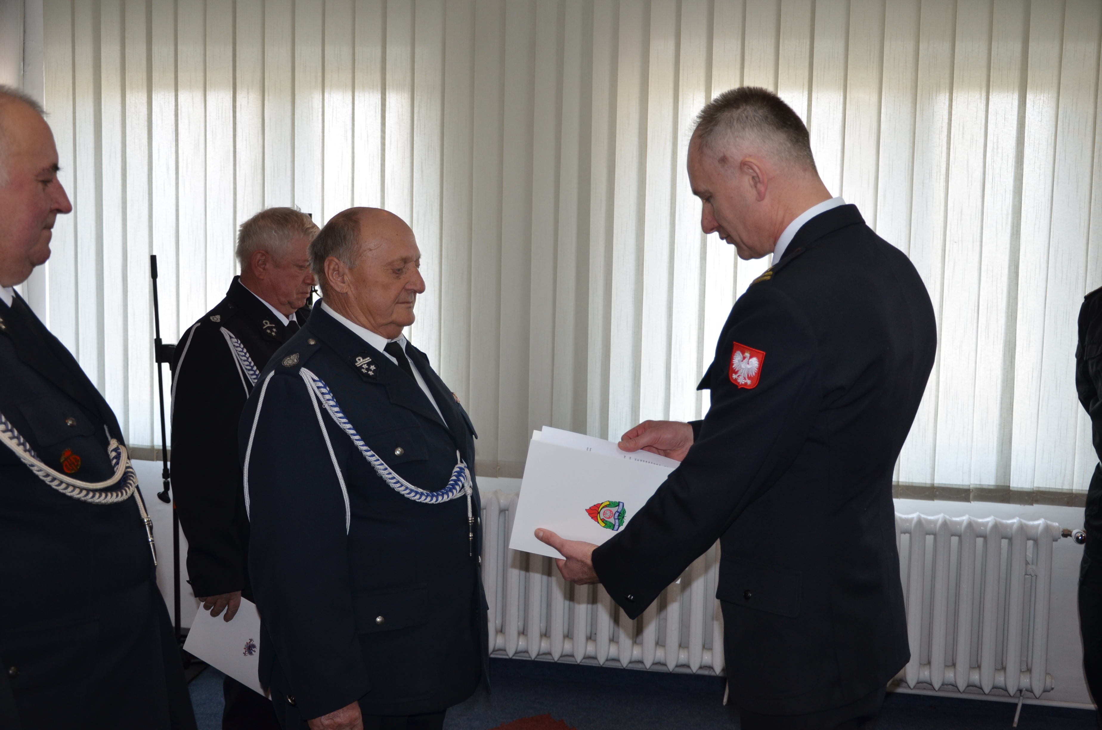 30 marca 2022 roku w sali konferencyjnej Komendy Powiatowej Państwowej Straży Pożarnej w Wieluniu odbyła się uroczystość przyznania świadczeń ratowniczych pierwszym druhom OSP. Pełniący obowiązki Komendanta Powiatowego Państwowej Straży Pożarnej w Wieluniu mł. bryg. Karol Bednarski oraz Zastępca Komendanta Powiatowego Państwowej Straży w Wieluniu st. bryg. Piotr Cały wraz z asp. sztab. Maciejem Durą wręczyli zasłużonym druhom decyzje o przyznaniu świadczeń ratowniczych. Obecni na spotkaniu druhowie to byli strażacy, którzy przez dekady pełnili ważne funkcje w macierzystych jednostkach, jednocześnie czynnie uczestnicząc w akcjach i działaniach ratowniczo-gaśniczych.