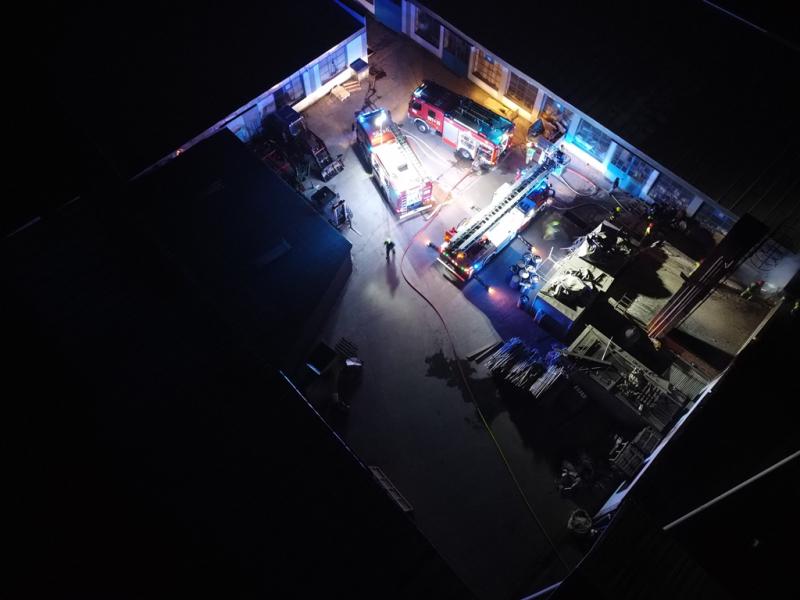 Działania straży polegały na zabezpieczeniu miejsca zdarzenia, podaniu jednego prądu wody w obronie na halę produkcyjną, wykonaniu otworów rewizyjnych do pomieszczenia z trocinami i podaniu dwóch prądów wody przez dach budynku z użyciem lancy gaśniczych i jednego prądu wody w natarciu przez drzwi do pomieszczenia. Ze względu na bardzo duże zadymienie panujące w pomieszczeniu w celu zlokalizowania źródła pożaru użyto kamery termowizyjnej oraz równocześnie w trakcie prowadzono oddymianie pomieszczeń. W trakcie działań zadysponowano kolejne dwa zastępy straży ze względu na brak wydajności sieci wodociągowej i koniecznością dowożenia wody z dalszych odległości. Po lokalizacji pożaru dalsze czynności polegały na usunięciu trocin i ich dogaszeniu.