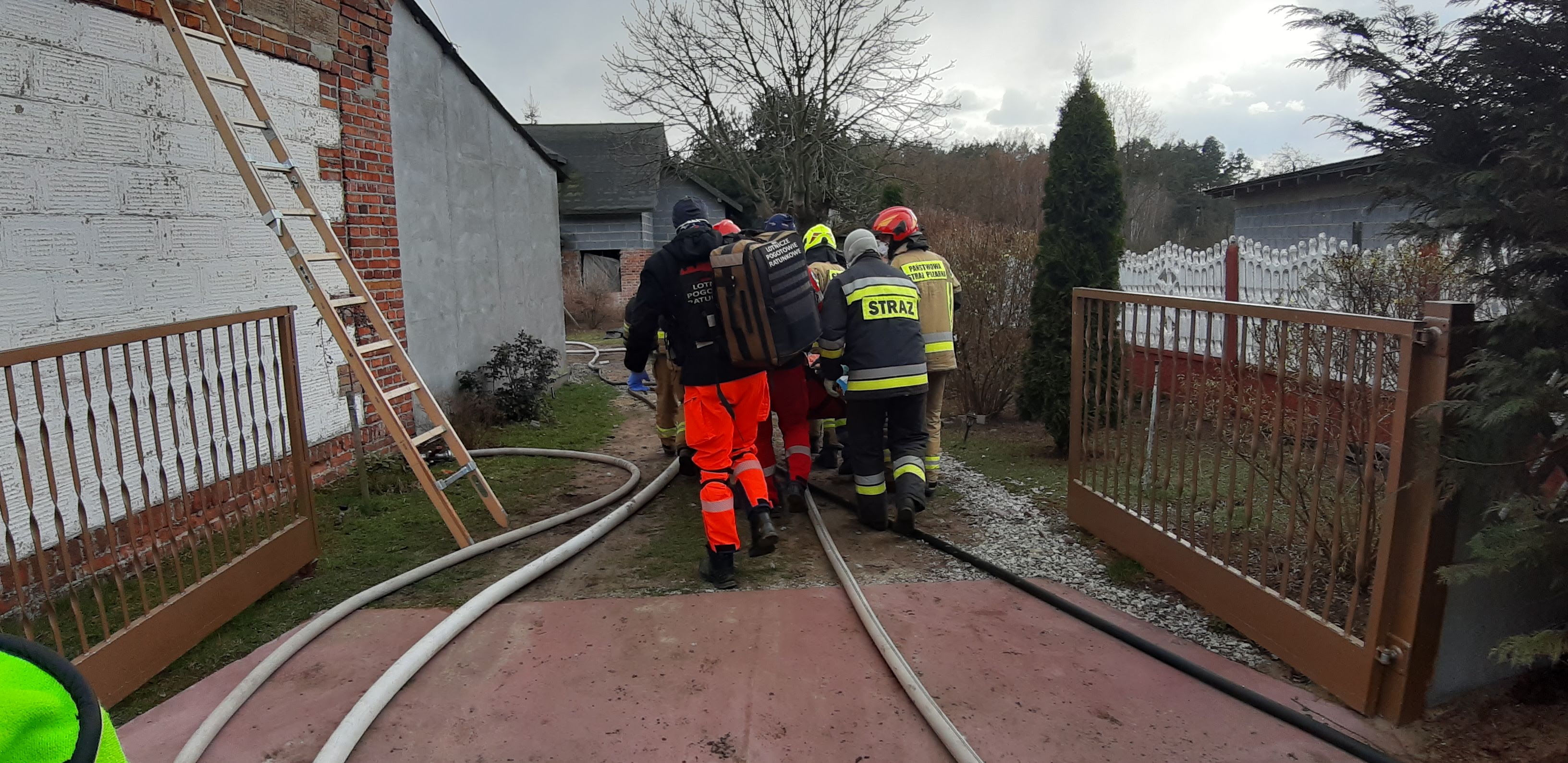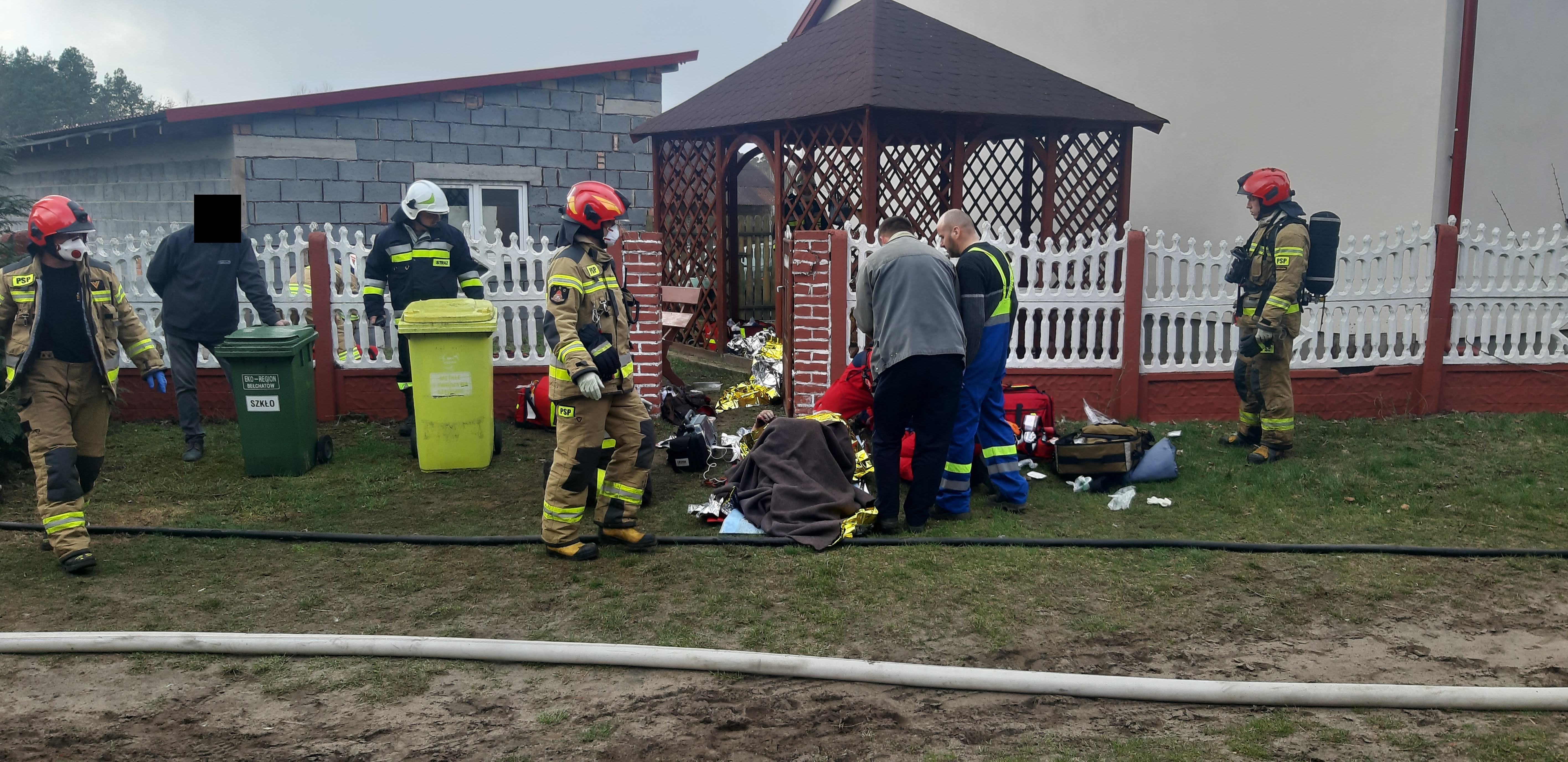 Działania straży polegały na zabezpieczeniu miejsca zdarzenia, podaniu czterech prądów wody w natarciu do wnętrza palącego się budynku oraz wprowadzeniu ratowników w aparatach Ochrony Układu Oddechowego w celu zlokalizowania i ewakuacji osób znajdujących się wewnątrz budynku. Równocześnie prowadzono działania polegające na udzieleniu kwalifikowanej pierwszej pomocy medycznej dwóm osobom poszkodowanym znajdujących się poza budynkiem przy użyciu opatrunków hydrożelowych, tlenoterapii, izolacji termicznej, wsparciu psychicznym. Dalsze czynności straży polegały na wyniesieniu z budynku dwóch butli gazowych oraz ich schłodzenia i ewakuacji dwóch osób poszkodowanych. Będący na miejscu lekarz Lotniczego Pogotowia Ratunkowego przejął osoby poszkodowane stwierdzając ich zgon.
