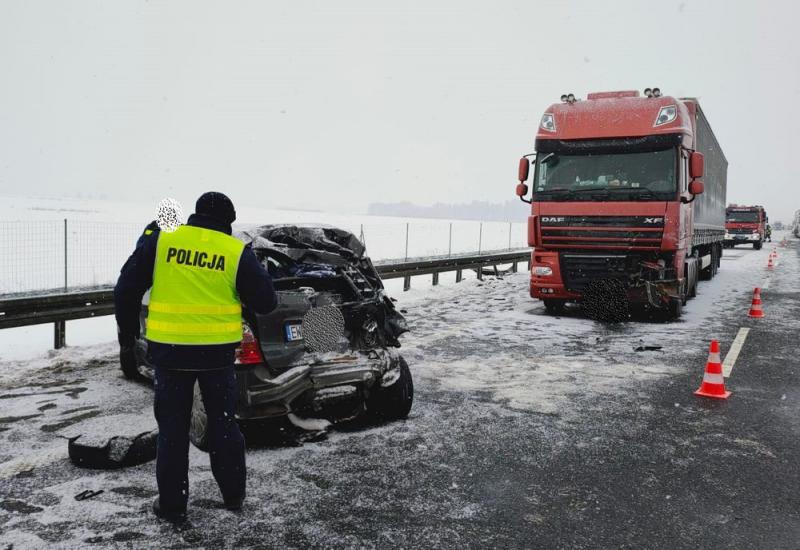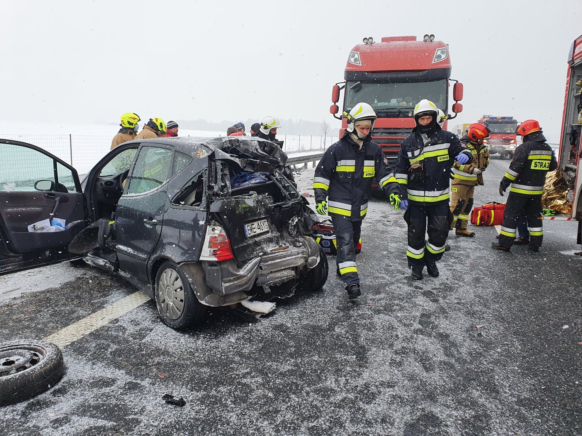 W dniu 10.02.2021 o godz. 09:23 Stanowisko Kierowania Komendanta Powiatowego Państwowej Straży Pożarnej w Wieruszowie odebrało zgłoszenie o wypadku dwóch samochodów na drodze S8, 126km w gm. Sokolniki. Do zdarzenia zadysponowano dwa zastępy JRG PSP Wieruszów oraz dwa zastępy z OSP KRSG Walichnowy oraz OSP KRSG Sokolniki. Po przybyciu na miejsce zdarzenia zastano dwa samochody uczestniczące w zdarzeniu. Samochód osobowy został najechany przez samochód ciężarowy, w wyniku czego obrażeń doznały dwie osoby. Działania straży polegały na zabezpieczeniu miejsca zdarzenia, udzieleniu kwalifikowanej pierwszej pomocy medycznej tym osobom w postaci założenia kołnierza stabilizującego oraz zabezpieczeniu przed utratą ciepła. Przybyły na miejsce Zespół Pogotowia Ratunkowego przejął osoby poszkodowane transportując je do szpitala. Dalsze czynności straży polegały na neutralizacji i sorpcji rozlanych płynów eksploatacyjnych. Straty oszacowano na ok.10 tys. zł.