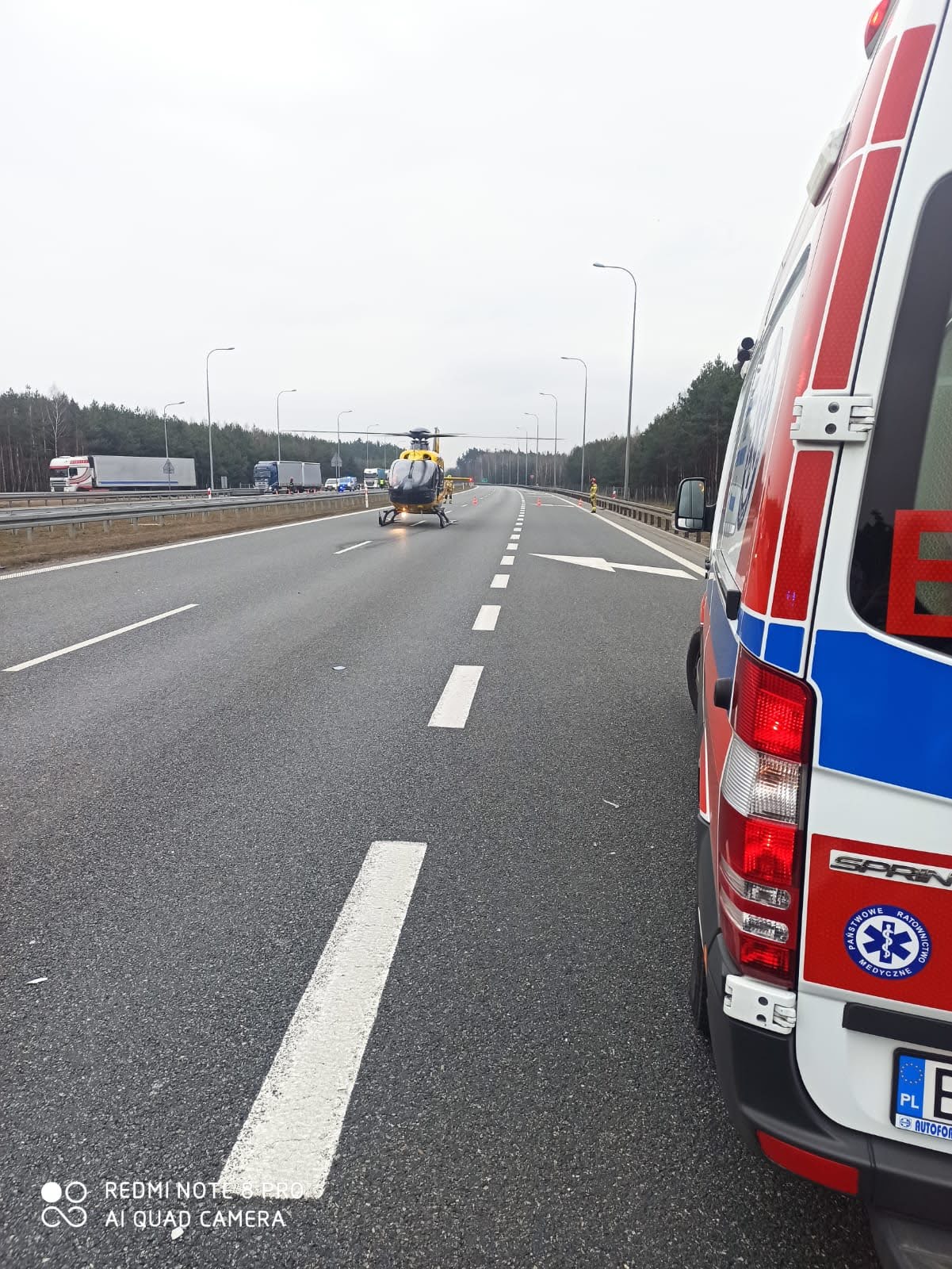 Wypadek S8 osoba w ciężkim stanie zabrana przez LPR do szpitala w Łodzi