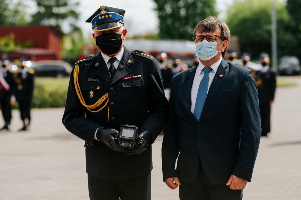 W trakcie apelu z rąk Pana Dariusza Czechowskiego st. kpt. Andrzej Smal odebrał dla Jednostki Ratowniczo-Gaśniczej we Włoszczowie kamerę termowizyjną.