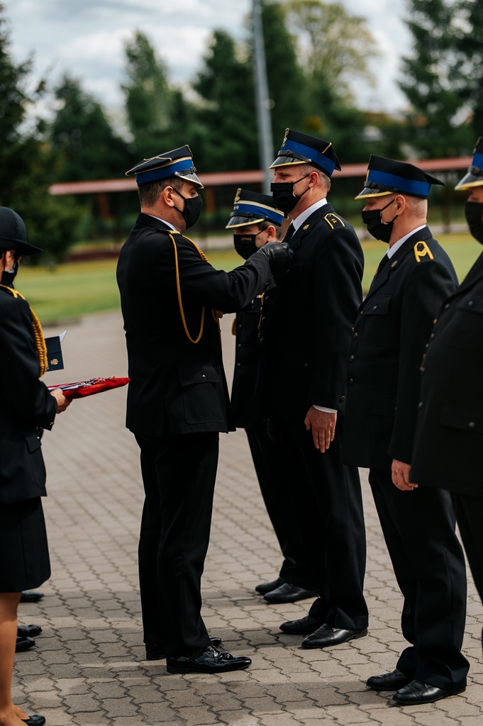 Po wciągnięciu flagi na maszt przy taktach hymnu narodowego nastąpił punkt kulminacyjny uroczystości czyli wręczenie awansów na wyższe stopnie służbowe oraz odznaczeń.