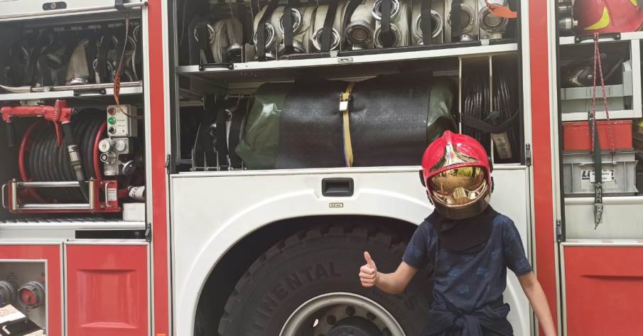 Na zakończenie spotkania strażacy zaprezentowali i omówili wyposażenie samochodu ratowniczo-gaśniczego. Każdy z uczestników wypoczynku mógł przez chwilę stać się strażakiem ubierając ubranie specjalne i podając prąd wody z szybkiego natarcia.