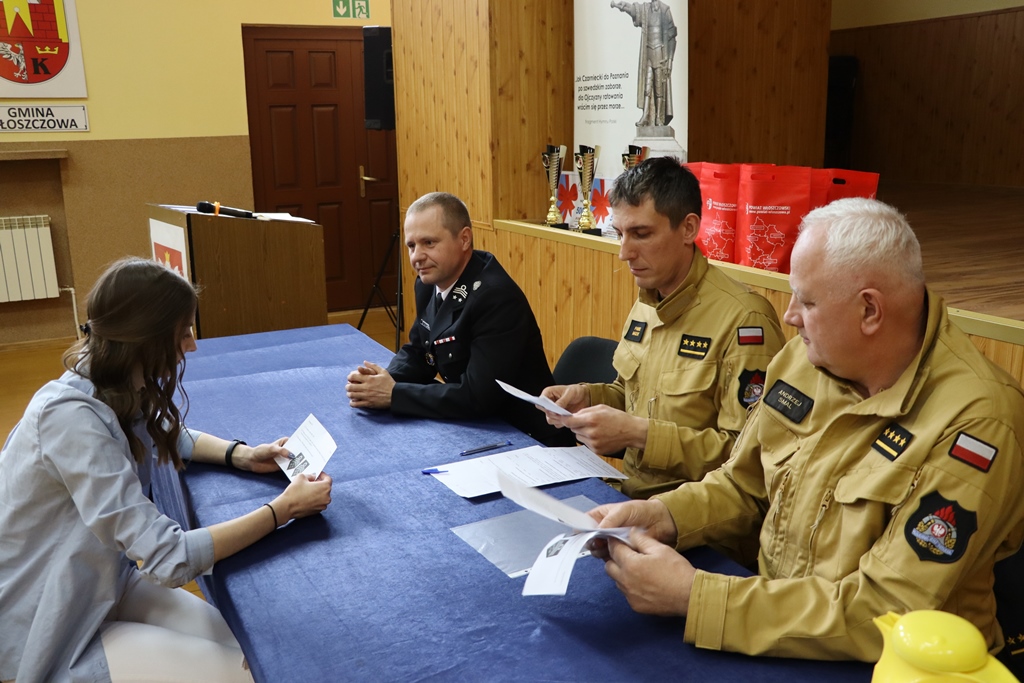 Prawidłowego przebiegu oraz weryfikacji wiedzy uczestników dokonała komisja konkursowa w skład, której weszli funkcjonariusze Komendy Powiatowej PSP we Włoszczowie oraz przedstawiciel Zarządu Oddziału Powiatowego Związku Ochotniczych Straży Pożarnych RP we Włoszczowie.