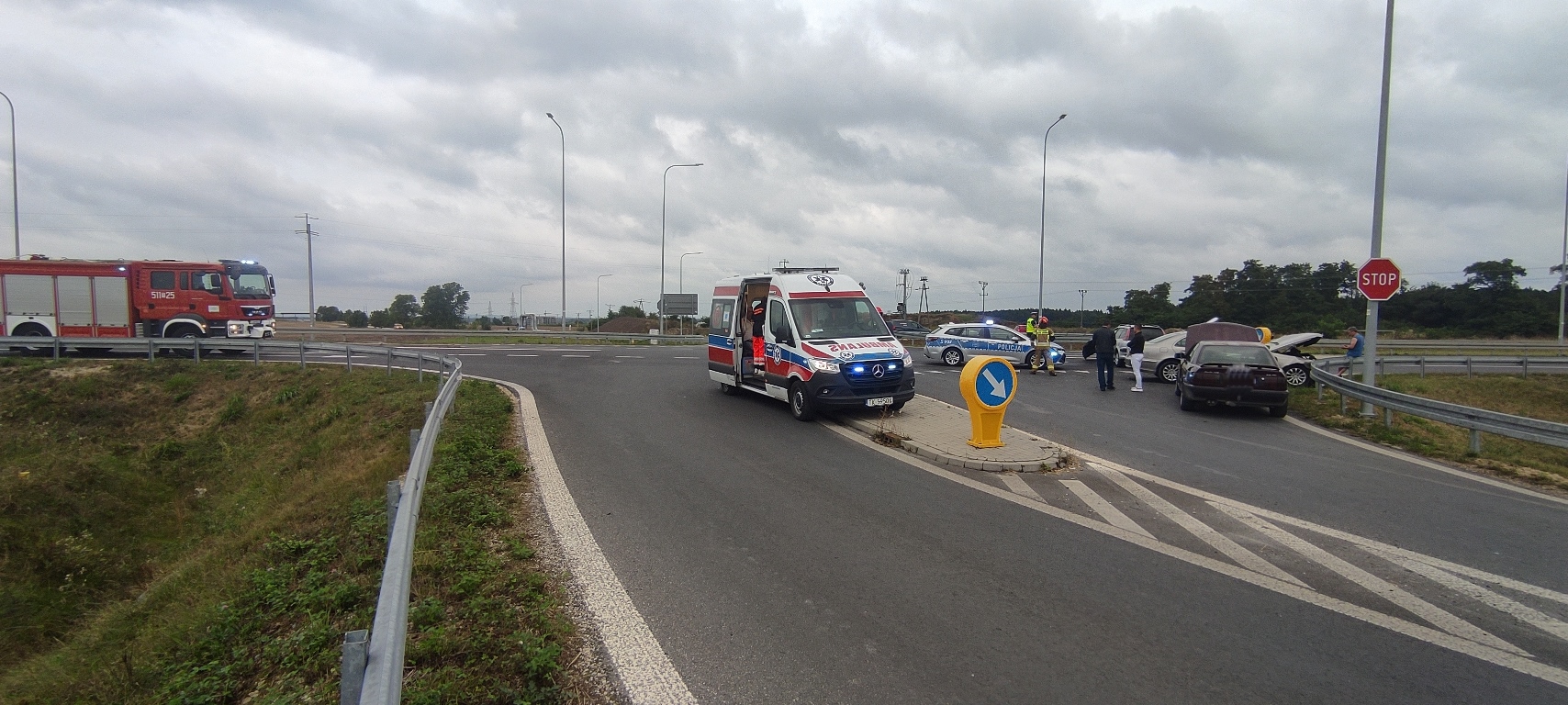 28 sierpnia 2023 r. dyżurny Stanowiska Kierowania Komendanta Powiatowego PSP we Włoszczowie otrzymał informacje o wypadku na skrzyżowaniu obwodnicy Włoszczowy z ulicą Wiśniową, w którym brały udział 3 pojazdy.