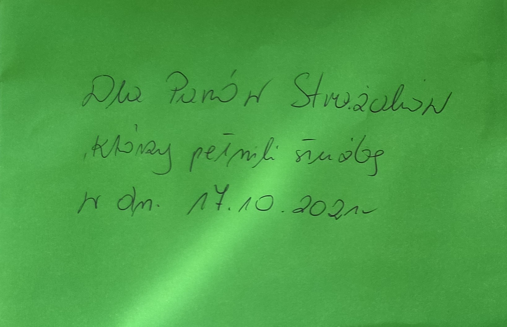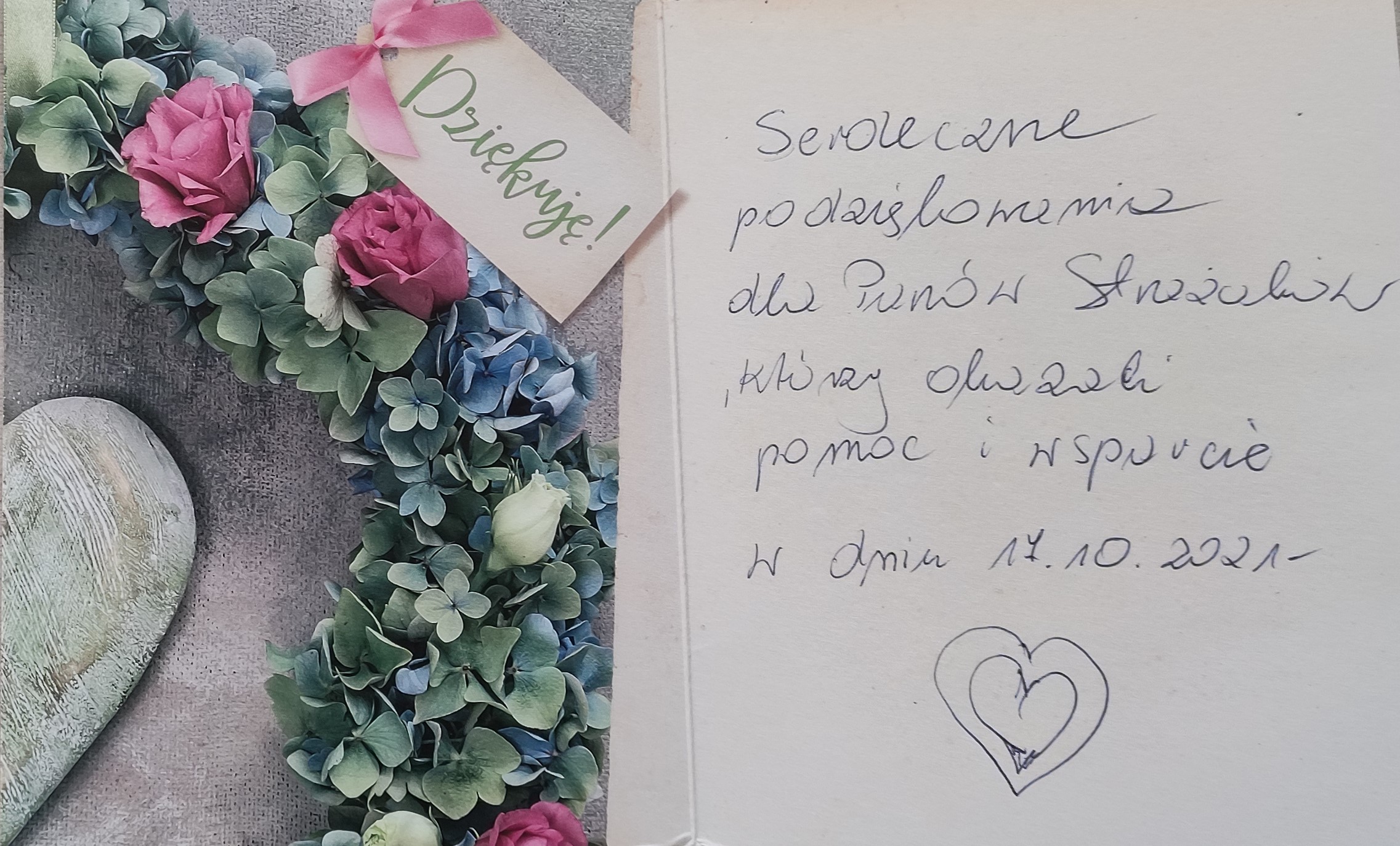 W związku z tymi działaniami 25 października br. jedna z uczestniczek zdarzenia na ręce komendanta powiatowego PSP złożyła serdeczne podziękowania za okazaną pomoc i wsparcie oraz dołączyła do nich słodki prezent.