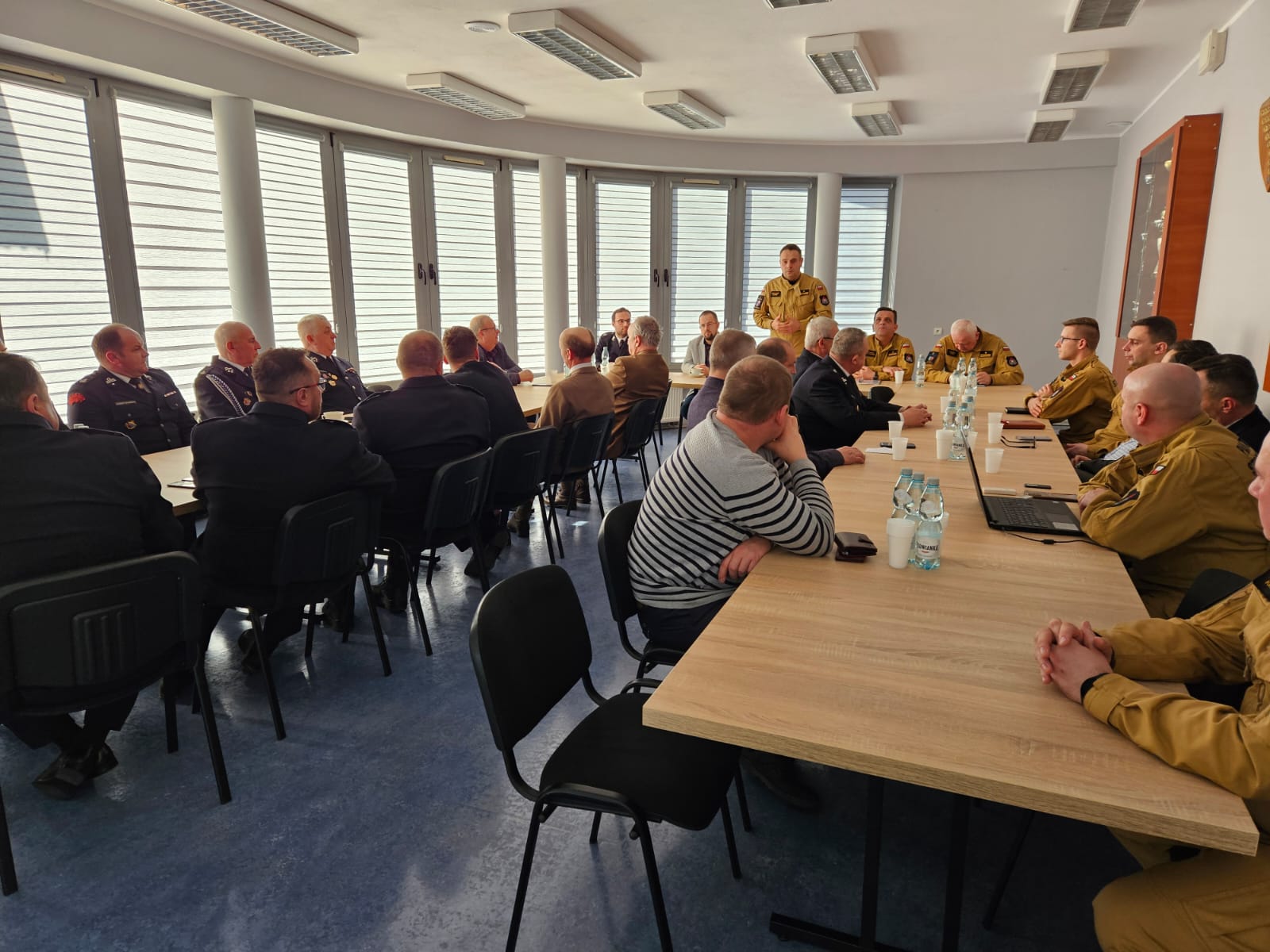 Spotkanie rozpoczął Komendant Powiatowy Państwowej Straży Pożarnej we Włoszczowie mł. bryg. Andrzej Pacanowski, który przywitał wszystkich uczestników narady. Następnie zreferował działania z zakresu ochrony przeciwpożarowej w 2023 roku. Przypomniane zostały największe akcje ratownicze ubiegłego roku, pochwalono się pozyskanym sprzętem i zaprezentowano pracę w zakresie prewencji społecznej.