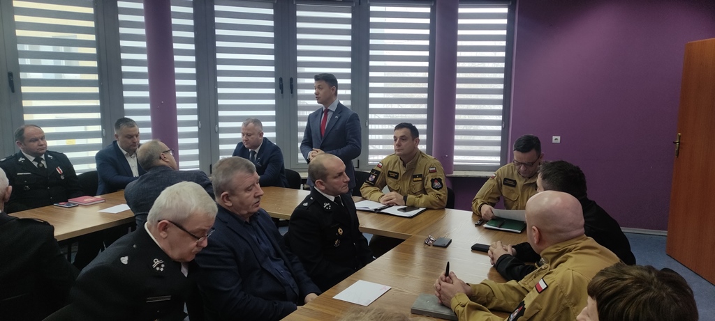W spotkaniu udział wzięli: Poseł Ziemi Świętokrzyskiej na Sejm RP Bartłomiej Dorywalski, V-ce Starosta Włoszczowski Łukasz Karpiński, burmistrz oraz wójtowie gmin powiatu włoszczowskiego, komendanci gminni ochotniczych straży pożarnych oraz przedstawiciele służb współdziałających.