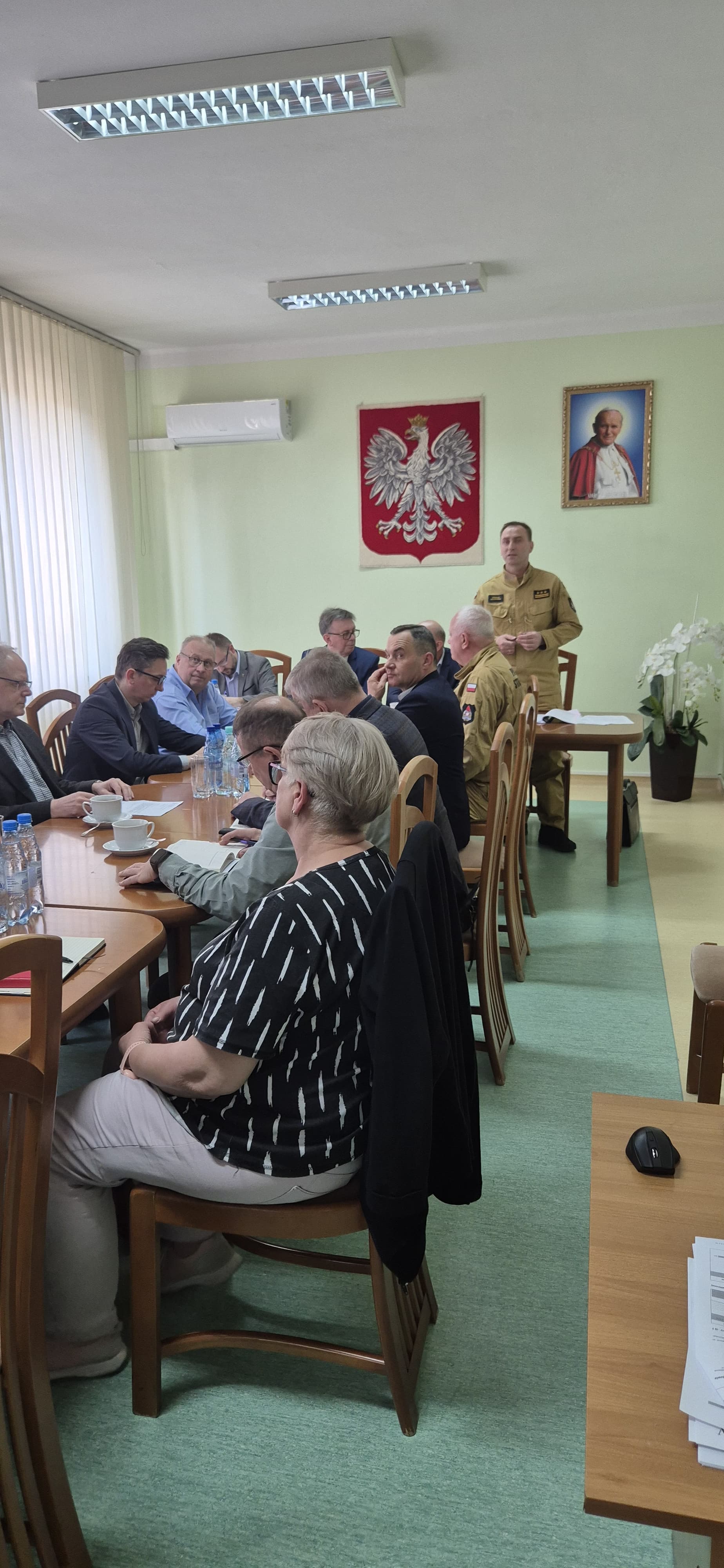 W spotkaniu uczestniczyli starosta włoszczowski, burmistrz i wójtowie gmin powiatu włoszczowskiego, pracownicy urzędów odpowiedzialni za realizację zadań wynikających z zapisów Ustawy o ochronie ludności i obronie cywilnej (Dz.U. z 2024r, poz. 1907) dotyczących obiektów zbiorowej ochrony oraz Powiatowy Inspektor Nadzoru Budowlanego. Funkcjonariusze tutejszej komendy na czele z Komendantem Powiatowym PSP we Włoszczowie st. bryg. Tomaszem Szymańskim omówili tematykę uznania obiektu budowlanego za budowlę ochronną oraz podstaw do przeprowadzenia kontroli spełnienia wymaganych warunków przez obiekty zbiorowej ochrony.