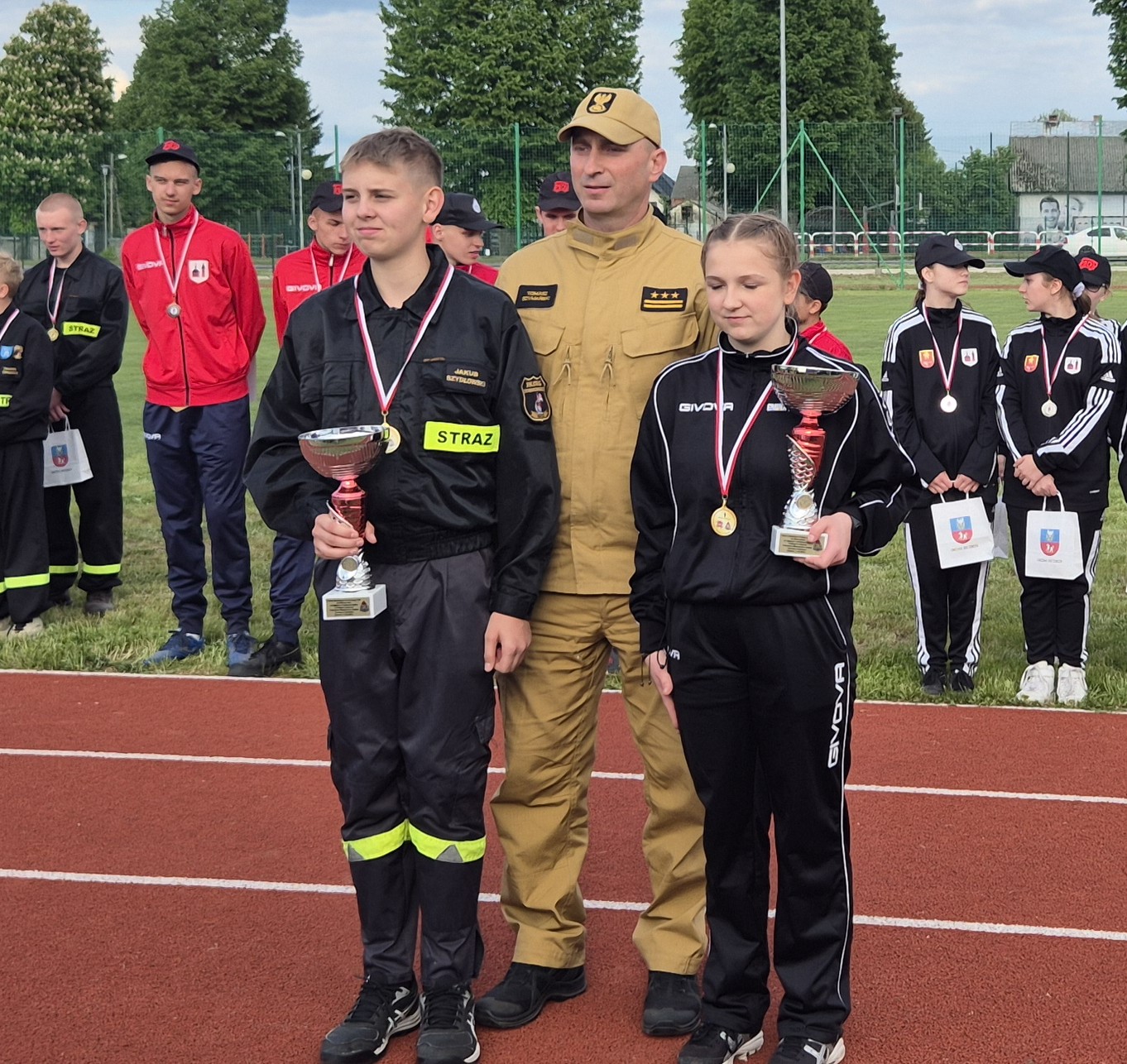 Pamiątkowe puchary, medale i dyplomy wręczali: Komendant Powiatowy PSP we Włoszczowie – st. bryg. Tomasz Szymański, Z-ca Komendanta Powiatowego PSP we Włoszczowie – mł. bryg. Andrzej Smal, Prezes Zarząd Oddziału Powiatowego Związku OSP RP we Włoszczowie – dh Bartłomiej Robak, Vice Prezes Zarządu Oddziału Powiatowego ZOSP RP we Włoszczowie – dh Krzysztof Błaut, Komendanci Gminni ZOSP RP – dh Norbert Celebański, dh Jarosław Drążkiewicz, Przewodniczący Rady Powiatu Włoszczowskiego – Zbigniew Matyśkiewicz, Członek Zarządu Powiatu Włoszczowskiego – Jarosław Krzyżanowski, Burmistrz Gminy Włoszczowa – Grzegorz Dziubek, Wójt Gminy Secemin – Tadeusz Piekarski, Wójt Gminy Kluczewsko – Rafał Pałka oraz Sekretarz Gminy Radków – Jerzy Maszewski.