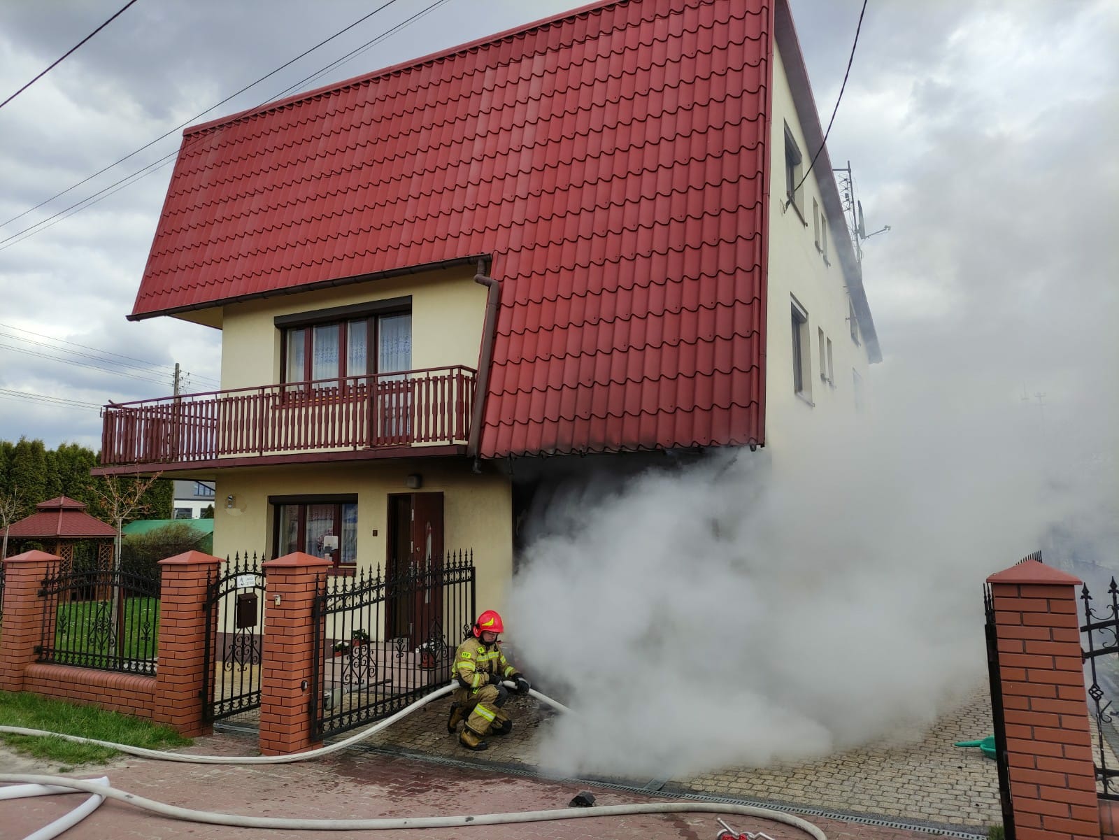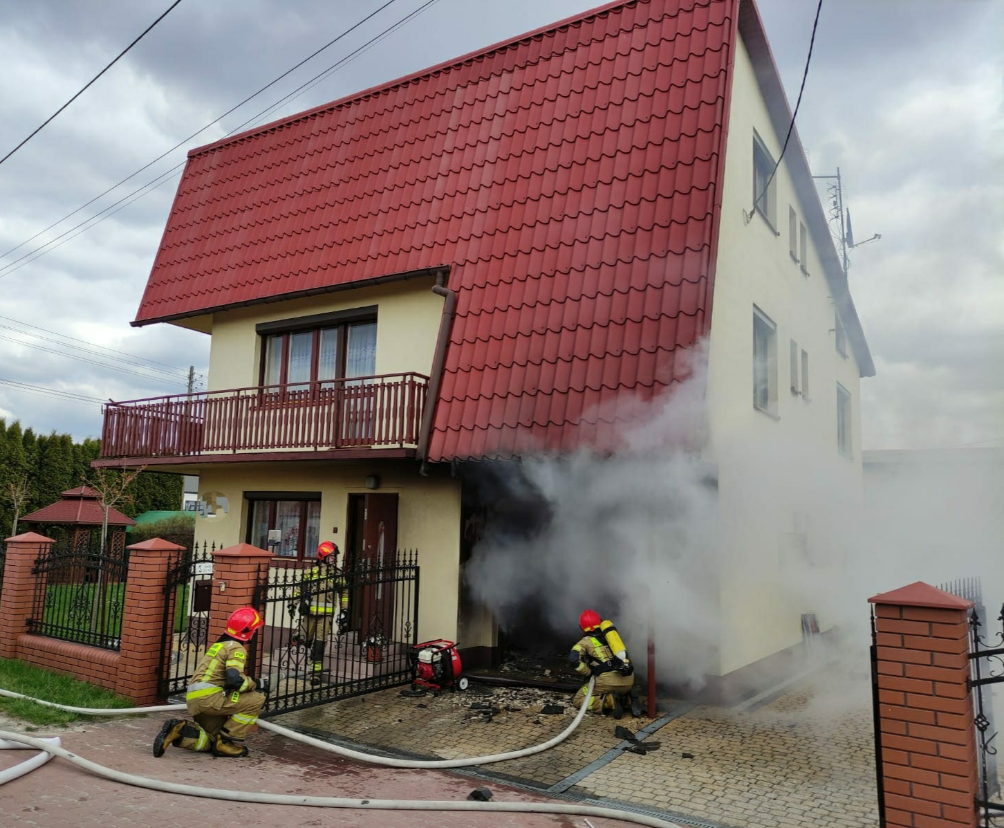 Pożar garażu w budynku mieszkalnym