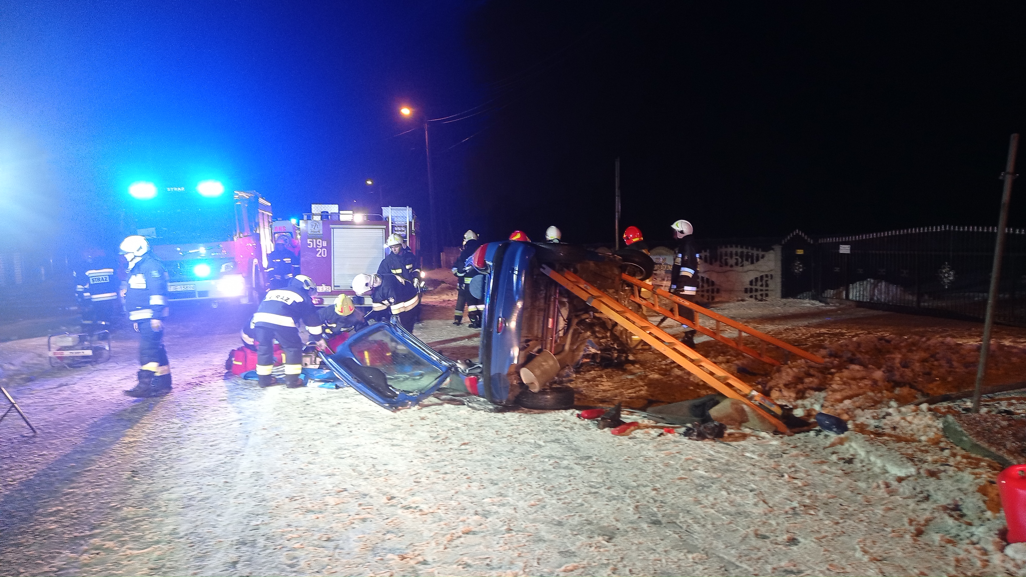 W dniu 14 lutego 2021 r. o godzinie 0:34 do Stanowiska Kierowania Komendanta Powiatowego Państwowej Straży Pożarnej we Włoszczowie wpłynęło zgłoszenie o wypadku samochodu osobowego na trasie krajowej nr 78 w miejscowości Chlewice. Do zdarzenia zadysponowano zastępy z JRG Włoszczowa i JRG Jędrzejów oraz OSP Moskorzew, Chlewice i Damiany. Po dojeździe stwierdzono, że samochód osobowy uderzył w przepust drogowy, leży na lewym boku na jezdni w kierunku Nagłowic. Wewnątrz pojazdu znajdował się przytomny mężczyzna, do którego wykonano dostęp przy użyciu narzędzi hydraulicznych. Poszkodowanemu udzielono kwalifikowanej pierwszej pomocy i przekazano będącemu na miejscu Zespołowi Ratownictwa Medycznego. W działaniach brało udział 5 zastępów straży pożarnej, 21 ratowników.