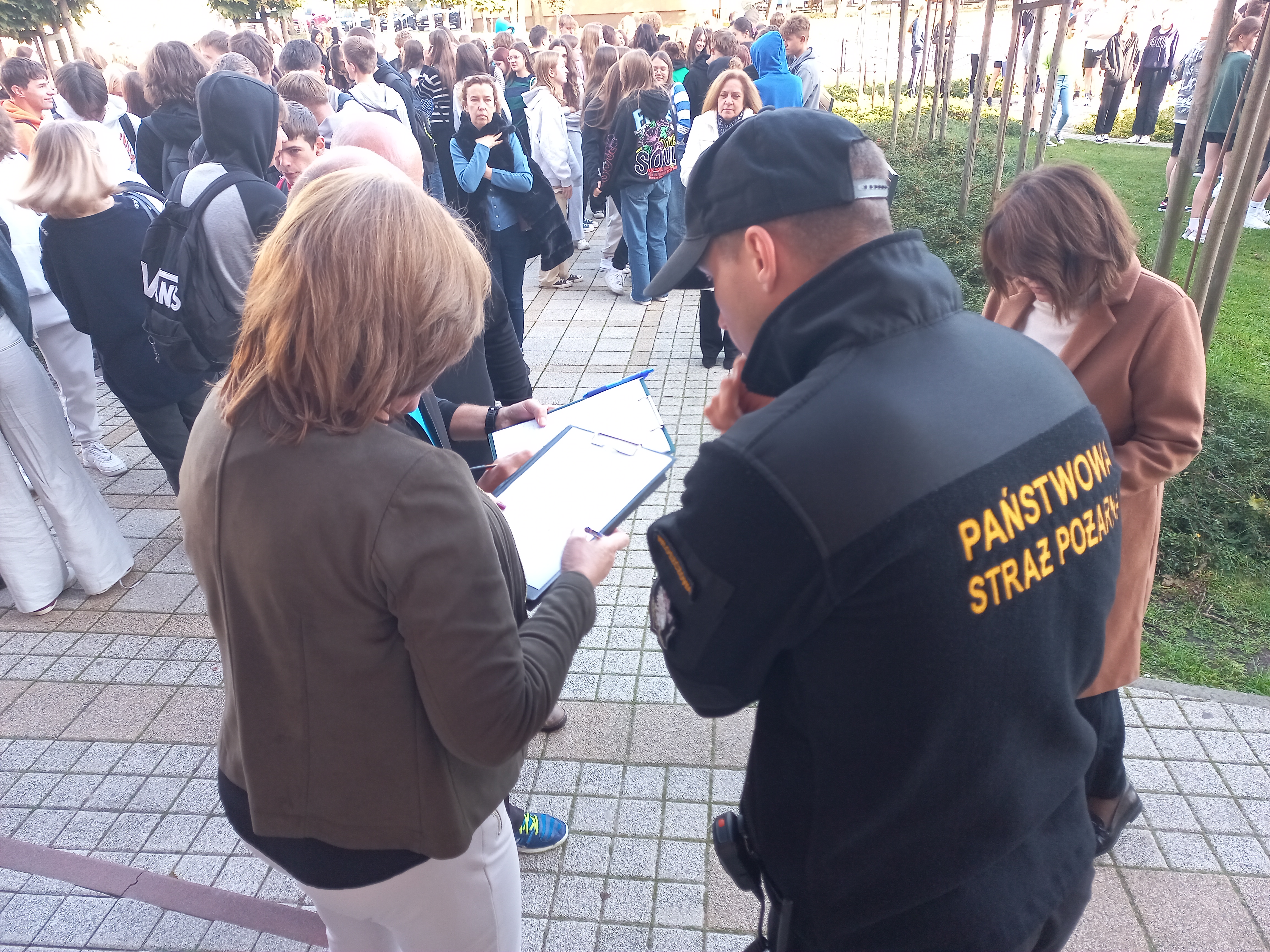 Próbna ewakuacja w I Liceum Ogólnokształcącego we Włoszczowie