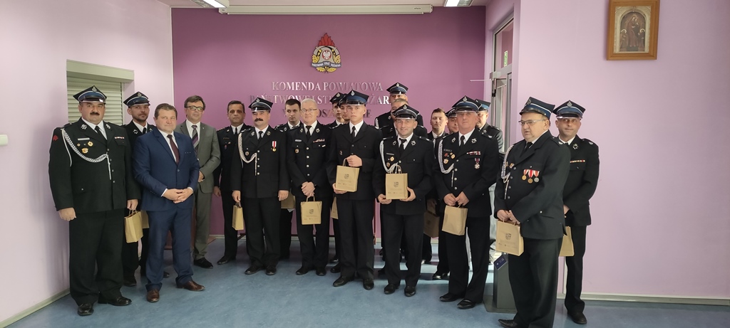 Wręczenia urządzeń przedstawicielom jednostek OSP oraz st. kpt. Andrzejowi Pacanowskiemu komendantowi powiatowemu PSP dokonał Artur Konarski radny Sejmiku Województwa Świętokrzyskiego oraz Dariusz Czechowski starosta włoszczowski.