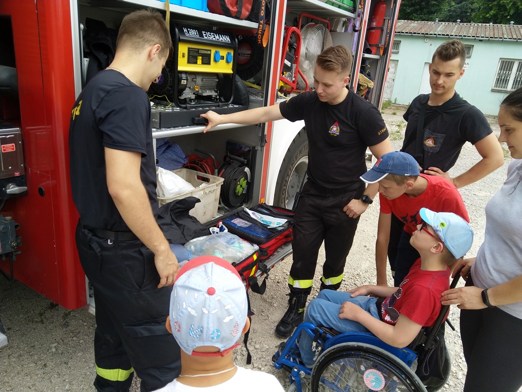 Strażacy z Jednostki Ratowniczo-Gaśniczej we Włoszczowie uczestniczyli w plenerowych lekcjach o bezpieczeństwie podczas pikniku zorganizowanego przez Sołectwo Danków Mały z okazji Dnia Dziecka oraz w Ośrodku Edukacyjno-Rehabilitacyjnym „Kolorowa Skarpetka” we Włoszczowie.