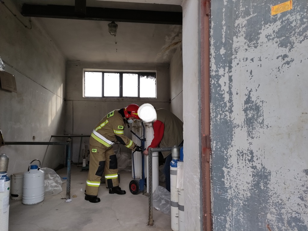 w Kielcach tzw. banku tlenu. Po jego przybyciu na miejsce akcji strażacy pomogli w rozładunku butli.