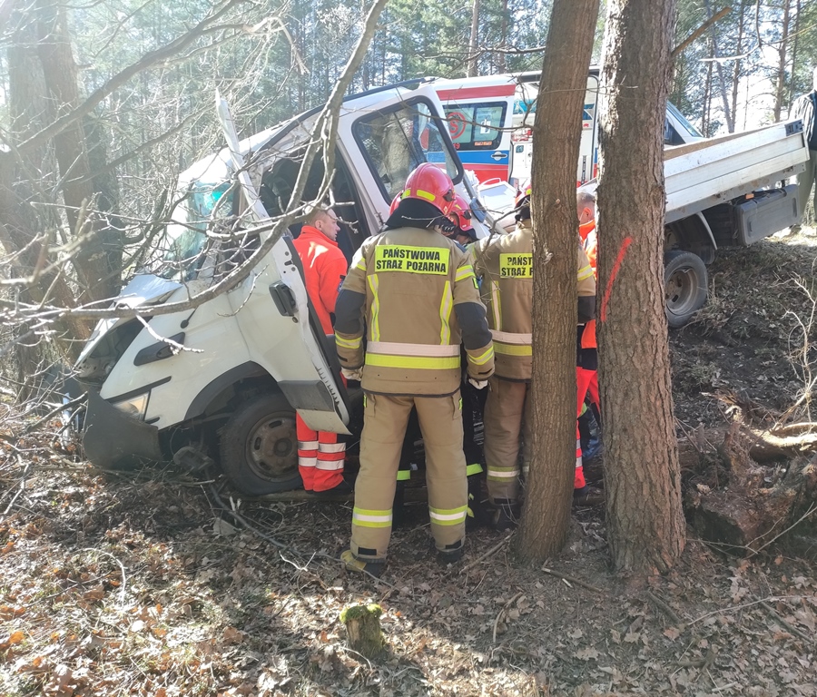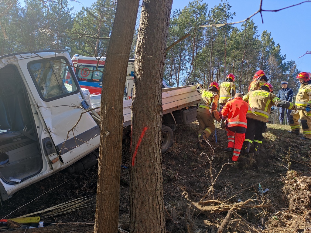 21 marca 2022 r. ok. godz. 13:30 do stanowiska kierowania komendanta powiatowego PSP we Włoszczowie wpłynęło zgłoszenie o wypadku na drodze powiatowej w kierunku miejscowości Oleszno. Po przybyciu na miejsce zdarzenia pierwszych zastępów straży stwierdzono, że samochód dostawczy Iveco Daily zjechał z jezdni i uderzył w drzewo. Pojazdem podróżował kierowca, który w momencie przyjazdu zastępów znajdował się w pojeździe i był przytomny. Strażacy, po zabezpieczeniu miejsca zdarzenia, wykonali dostęp do poszkodowanego kierowcy i ewakuowali go do karetki pogotowia, którą został przewieziony do szpitala.