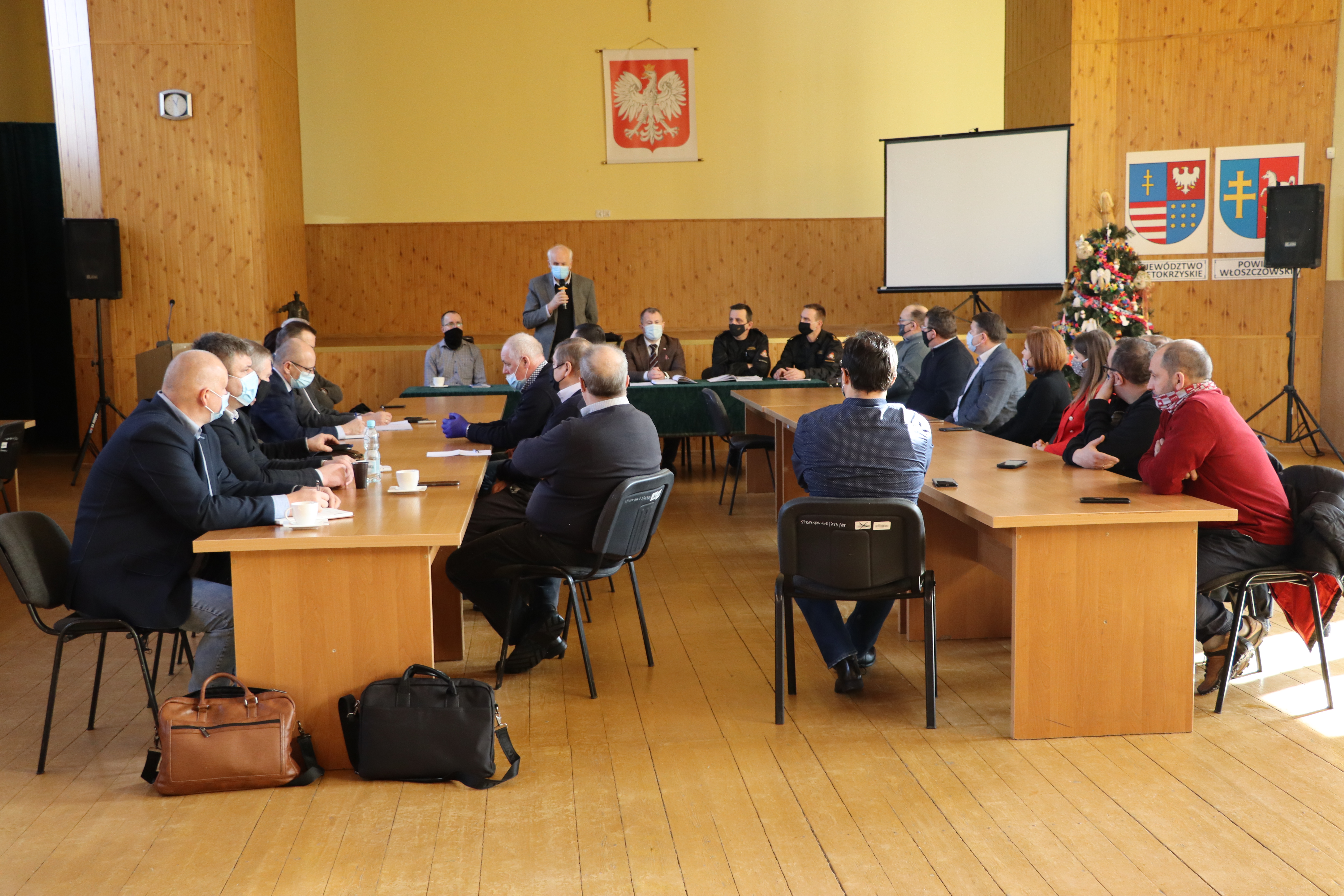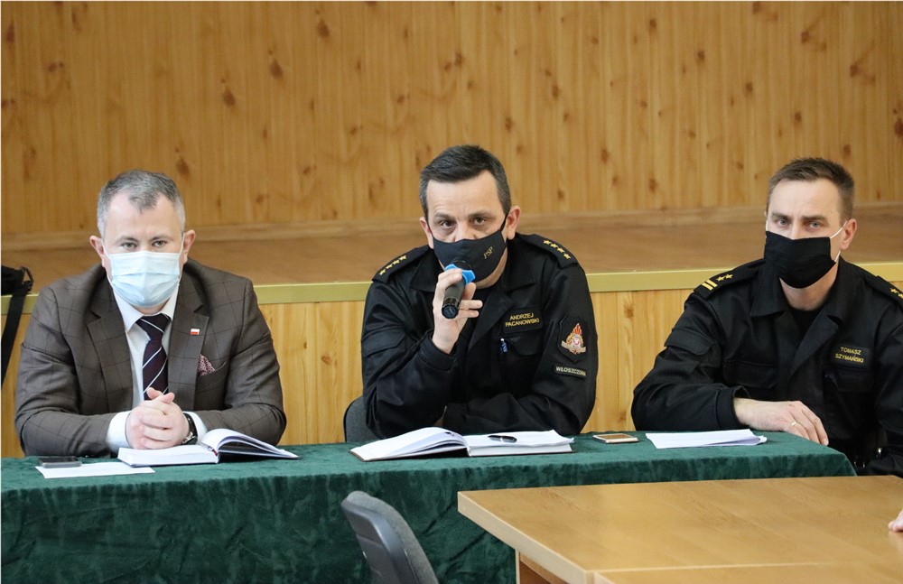 W spotkaniu uczestniczyli m.in.: komendant powiatowy PSP we Włoszczowie – st. kpt. Andrzej Pacanowski, Pełnomocnik wojewody świętokrzyskiego ds. realizacji programu szczepień ochronnych przeciwko wirusowi SARS-CoV2 – Jerzy Staszczyk, Wicestarosta – Łukasz Karpiński oraz przedstawiciele gmin i instytucji samorządowych szczebla powiatowego i gminnego oraz jednostek ochotniczych straży pożarnych. Przedstawiciele wojewody świętokrzyskiego, przedstawili zakres prac i działań podejmowanych przez służby wojewody w zakresie uruchomionej akcji szczepień i charakter pomocy jakiej oczekują od PSP i OSP. Komendant powiatowy PSP – st. kpt. Andrzej Pacanowski w swoim wystąpieniu, podkreślił jak ważna jest dobra współpraca i wymiana informacji z lokalnym samorządem i jednostkami OSP w zakresie uruchomionej akcji oraz omówił zasady dysponowania i ewidencjonowania zdarzeń związanych ze szczepieniami.