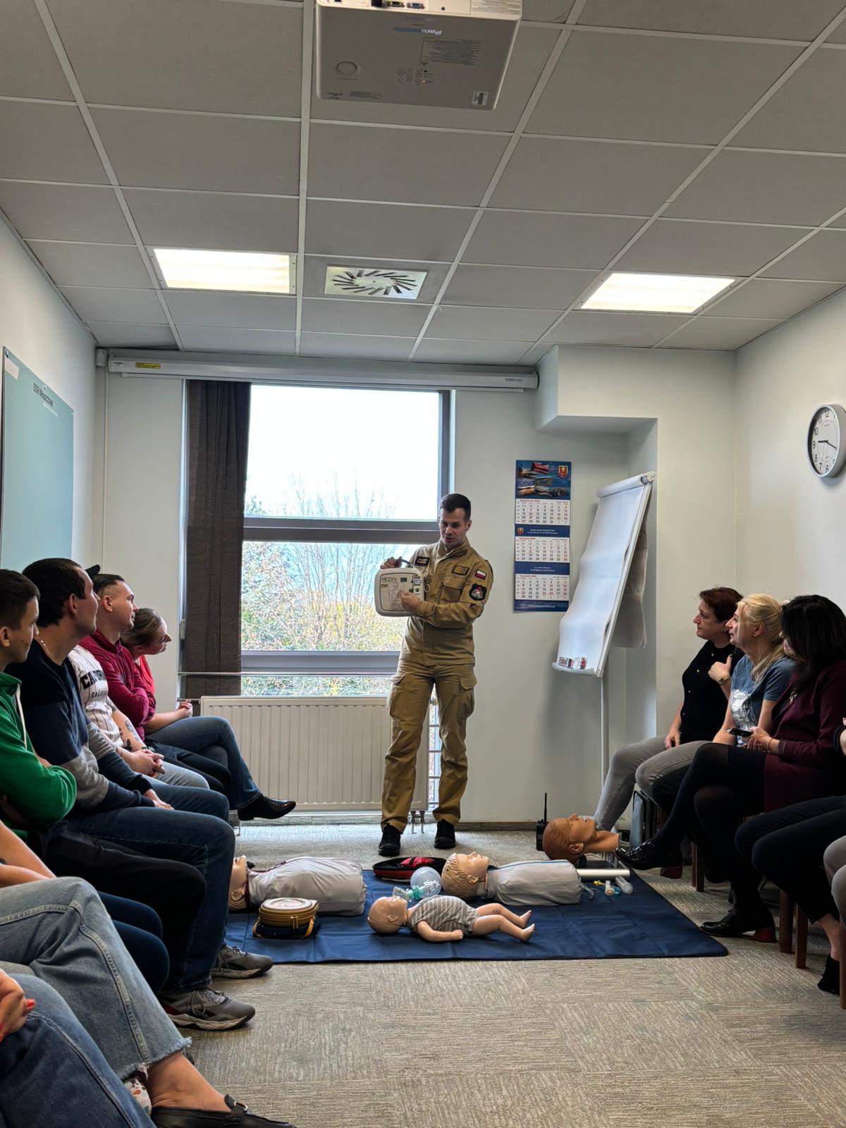 14 listopada 2025 r. funkcjonariusz z naszej komendy przeprowadził praktyczne szkolenie z udzielania kwalifikowanej pierwszej pomocy oraz instruktaż obsługi nowego defibrylatora AED, który został zamontowany przy hali sportowej na ul. Wiśniowej 2. To kolejne ważne narzędzie, które może uratować życie.
