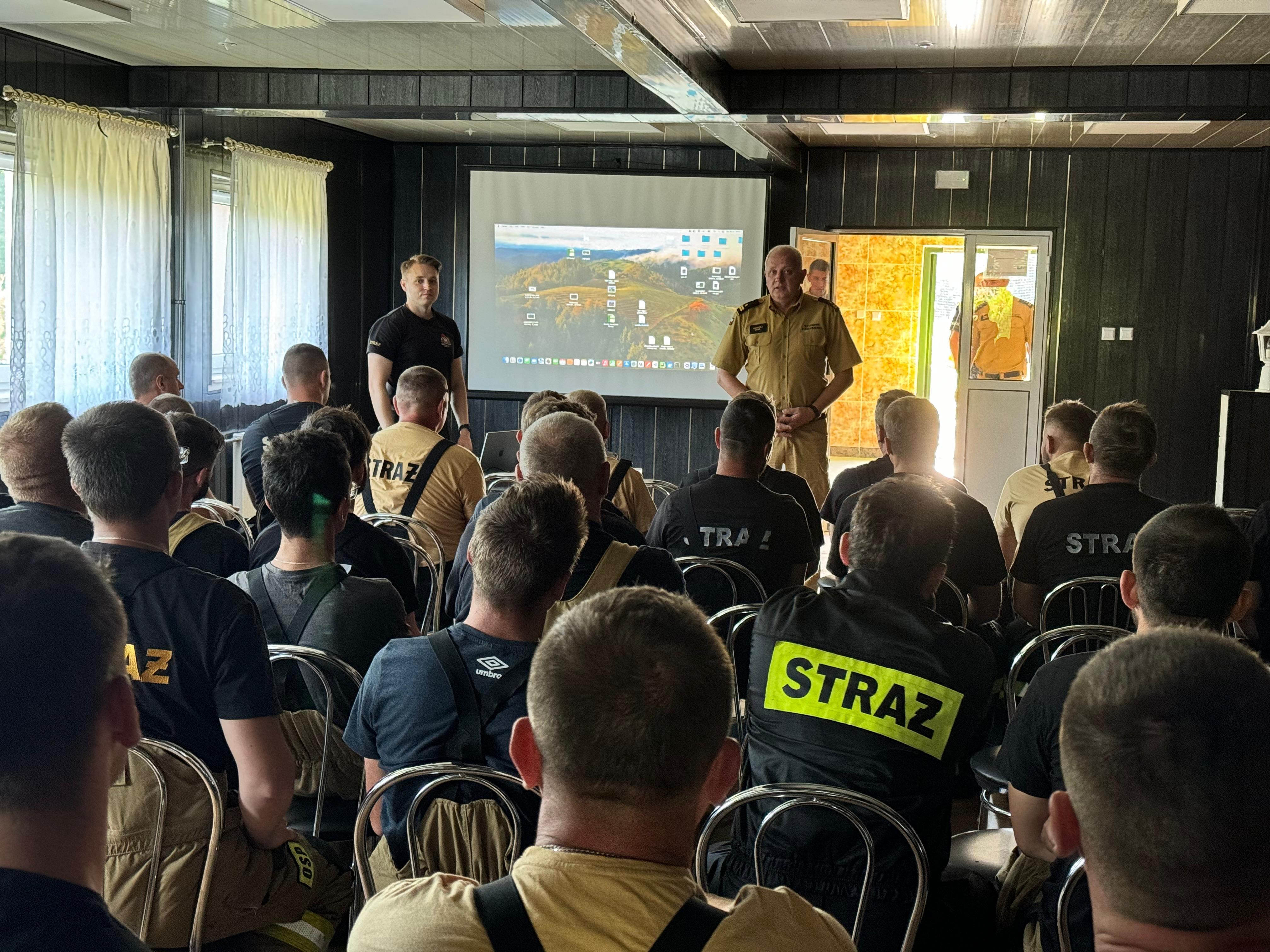 Ćwiczenia obserwowali mł. bryg. Andrzej Smal, zastępca komendanta powiatowego PSP we Włoszczowie oraz Wojciech Kociniak, zastępca nadleśniczego Nadleśnictwa Przedbórz.