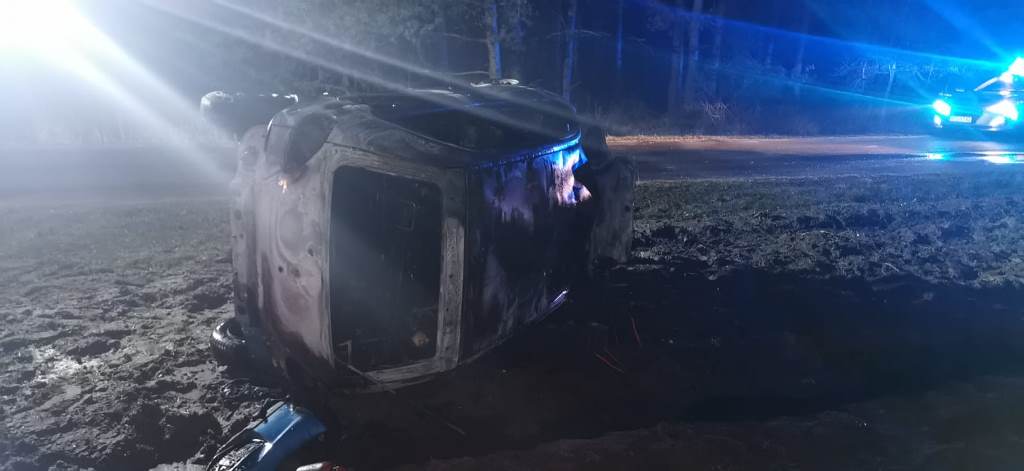 Tragiczne skutki dachowania samochodu osobowego