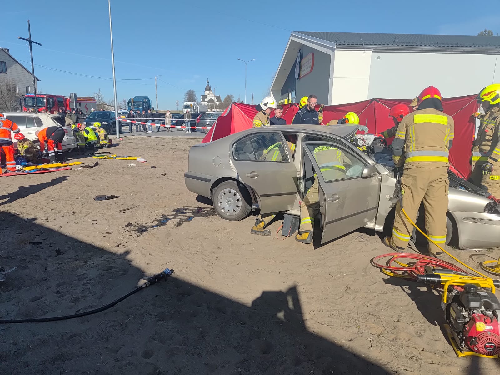 Dalsze działania straży polegały na dokonaniu sorpcji płynów eksploatacyjnych, które wyciekły z pojazdów. Na czas prowadzonych działań ruch na drodze powiatowej odbywał się wahadłowo.