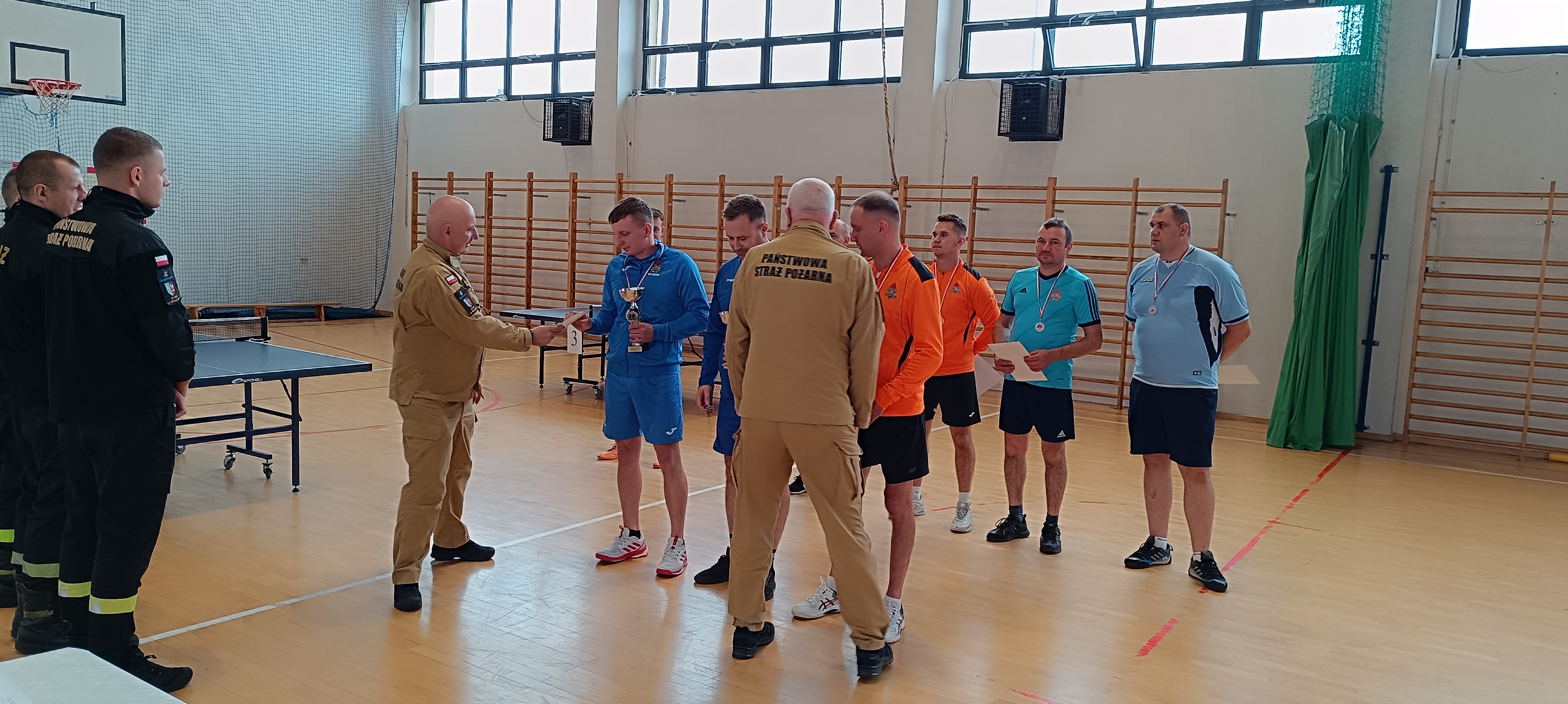 W zawodach brały udział cztery drużyny reprezentujące jednostki ratowniczo-gaśnicze świętokrzyskich komend Państwowej Straży Pożarnej: JRG Chmielnik, JRG Pińczów, JRG Busko – Zdrój i JRG Włoszczowa. Po pasjonujących meczach najlepszym zawodnikiem został sekc. Wojciech Siemianowski z JRG Pińczów, drugą lokatę zajął kpt. Grzegorz Trzęsień z JRG Chmielnik, trzecie miejsce zajął st. asp. Krystian Solecki z JRG Włoszczowa. Okolicznościowe puchary, medale i dyplomy zwycięzcom wręczył Z-ca Komendanta Powiatowego PSP we Włoszczowie – mł. bryg. Andrzej Smal. Zdobywcy dwóch pierwszych miejsc będą rywalizować w rozgrywkach finałowych mistrzostw, które odbędą się we Włoszczowie 31.10.2025 r.