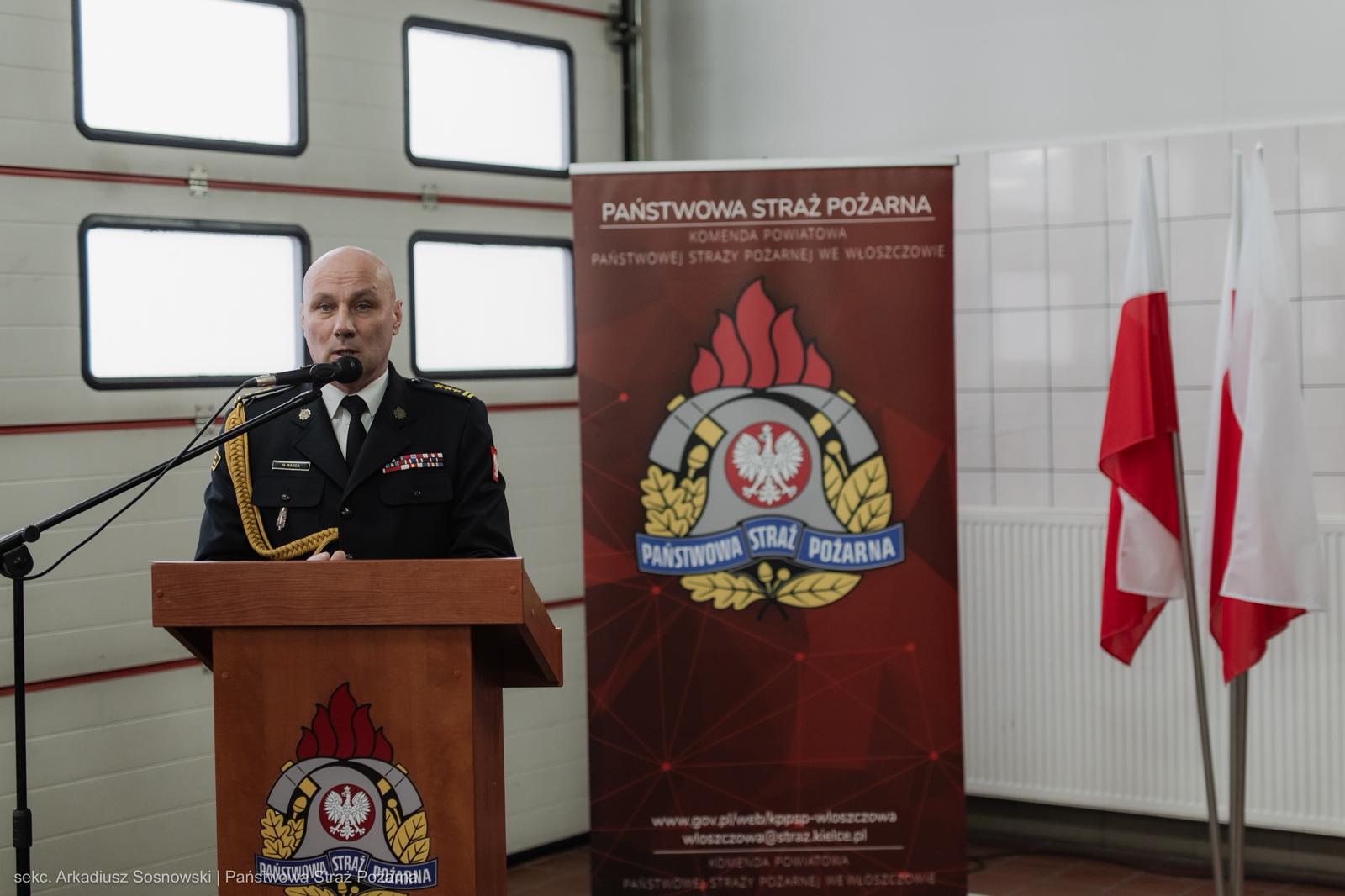 W uroczystości udział wzięli st. bryg. Tomasz Szymański - Komendant Powiatowy PSP we Włoszczowie, st. bryg. Grzegorz Rajca - Zastępca Świętokrzyskiego Komendanta Wojewódzkiego PSP, nadbryg. w st. spocz.. Krzysztof Ciosek – były Świętokrzyski Komendant Wojewódzki PSP, Starosta Włoszczowski, Burmistrz Gminy Włoszczowa, Wójtowie Gmin z terenu powiatu włoszczowskiego, podinsp. Zbigniew Popczyk - Komendant Powiatowy Policji we Włoszczowie, dh Dariusz Ławiński reprezentujący Zarząd Oddziału Powiatowego ZOSP RP we Włoszczowie oraz byli Komendanci Powiatowi PSP we Włoszczowie.