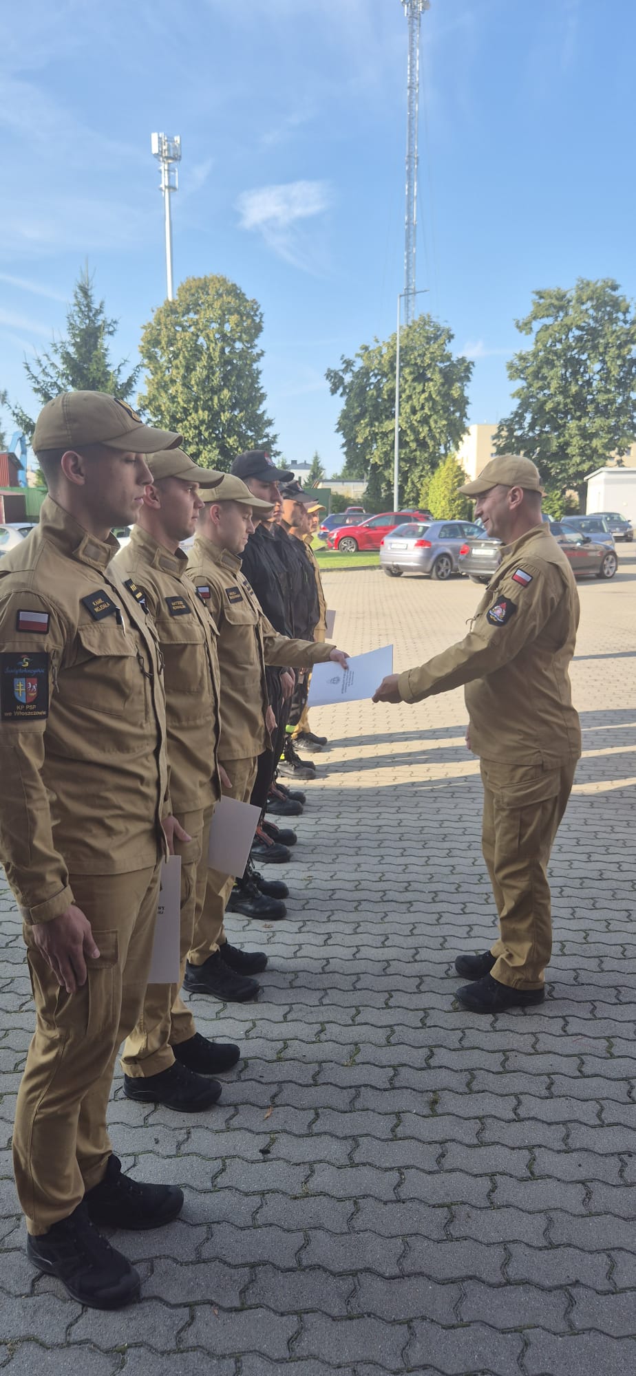 7 sierpnia 2025 r. w Jednostce Ratowniczo-Gaśniczej PSP we Włoszczowie odbyła się uroczysta zmiana służby w której udział wzięło kierownictwo komendy.