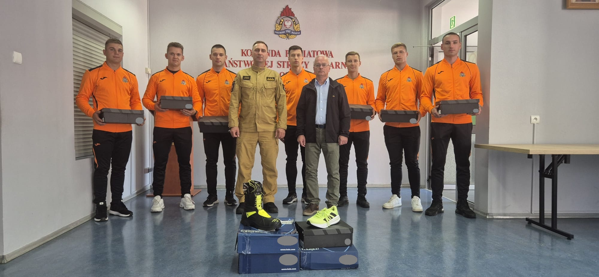 Po zmianie służby w Sali Narad KP PSP we Włoszczowie odbyło się spotkanie z Prezesem Zarządu Banku Spółdzielczego we Włoszczowie, Panem Arturem Kowalczykiem, który przekazał naszym strażakom obuwie sportowe oraz obuwie specjalne. Bardzo serdecznie dziękujemy Zarządowi Banku Spółdzielczego we Włoszczowa za ufundowanie sprzętu, który wpłynie na poprawę komfortu strażaków podczas treningów i zawodów oraz podniesie poziom bezpieczeństwa ratowników biorących udział w działaniach ratowniczych.