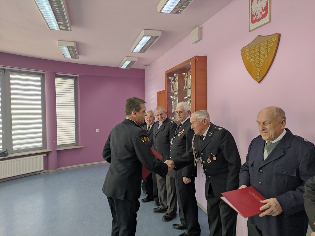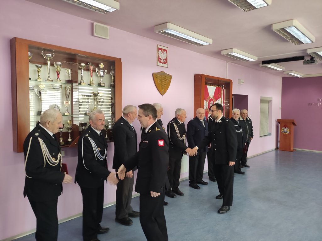Po wręczeniu decyzji o przyznaniu świadczenia ratowniczego głos zabrał uczestniczący w spotkaniu dh Bartłomiej Robak – Prezes Zarządu Oddziału Powiatowego ZOSP RP we Włoszczowie, który podziękował druhom za zaangażowanie oraz codzienną służbę na rzecz ochrony przeciwpożarowej i bezpieczeństwa mieszkańców powiatu włoszczowskiego.