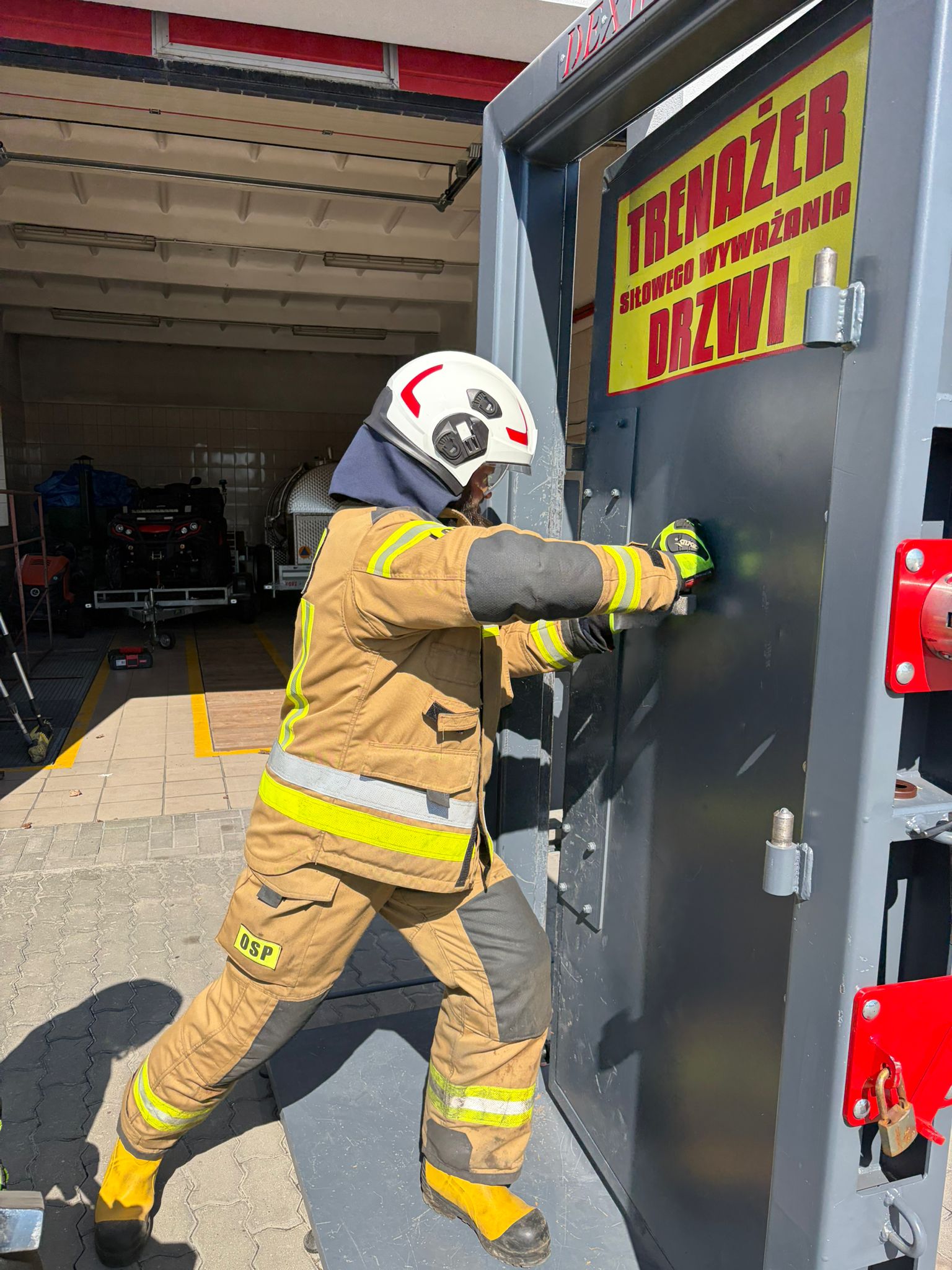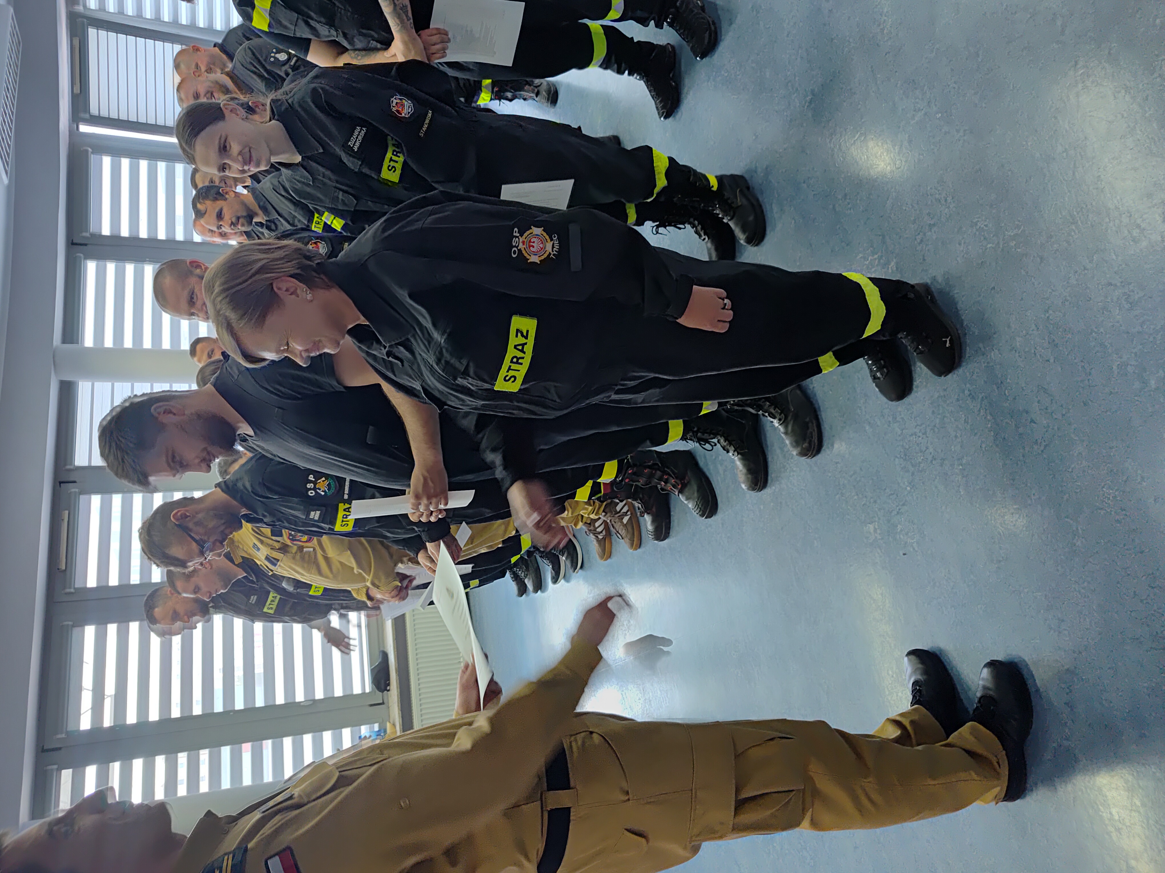 a także uczestniczyć w szkoleniu na trenażer siłowego wyważania drzwi, wypożyczonym dzięki uprzejmości Ośrodka Szkolenia Komendy Wojewódzkiej Państwowej Straży Pożarnej w Kielcach. Wręczenia zaświadczeń ukończenia kursu dokonał Z-ca Komendanta Powiatowego PSP we Włoszczowie, mł. bryg. Paweł Mazur.